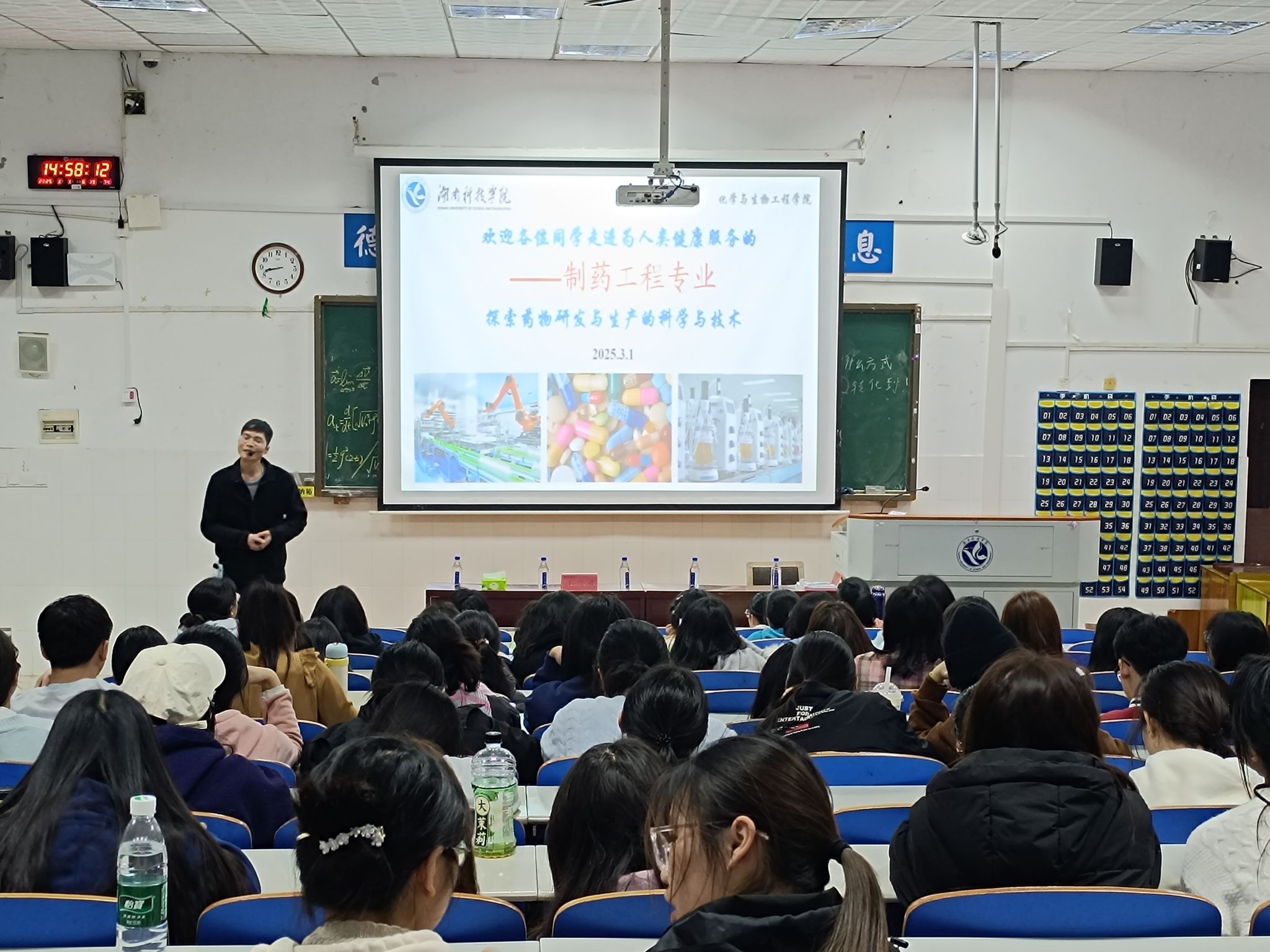 (本网讯 伍若邻)3月1日下午,化学与生物工程学院于逸夫楼201室举办制药工程专业教育大会(第二场)。湖南恒飞生物医药董事长伍雄飞先生担任主讲嘉宾,会议由制药工程系主任王宗成主持,制药工程专业大一、大二以及楚怡工匠计划学生参加大会。
