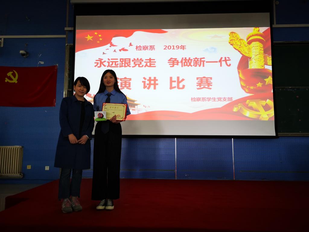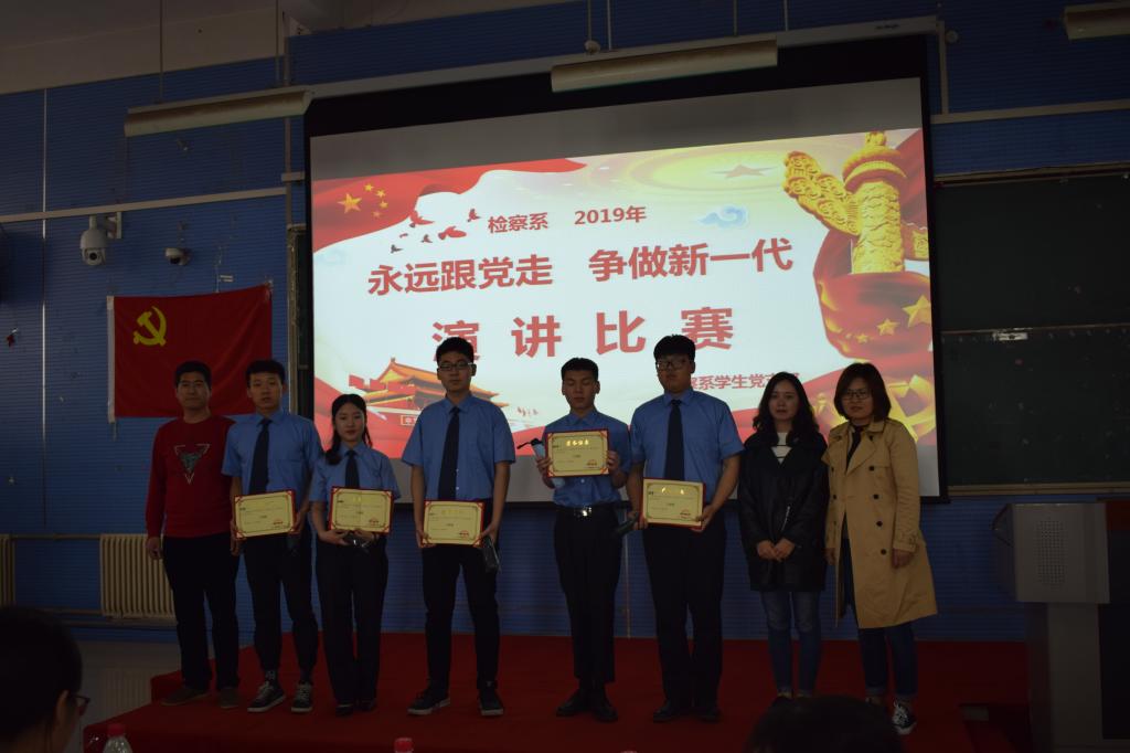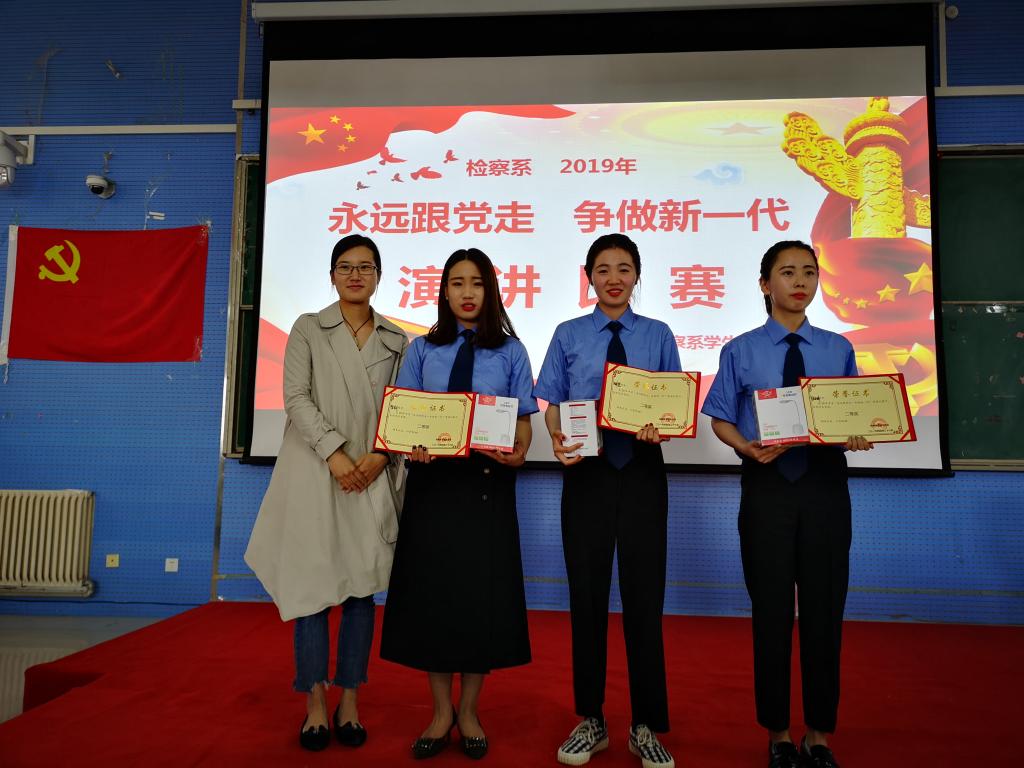 为深入学习贯彻党的十九大精神和习近平新时代中国特色社会主义思想,提高学生思想政治觉悟,4月26日,检察系学生党支部在2301教室举办“永远跟党走,争做新一代”主题演讲比赛决赛。检察系教务科科长时瑞燕、学生管理科科长张燕乐、全体辅导员以及2018级全体学生到场观看比赛。