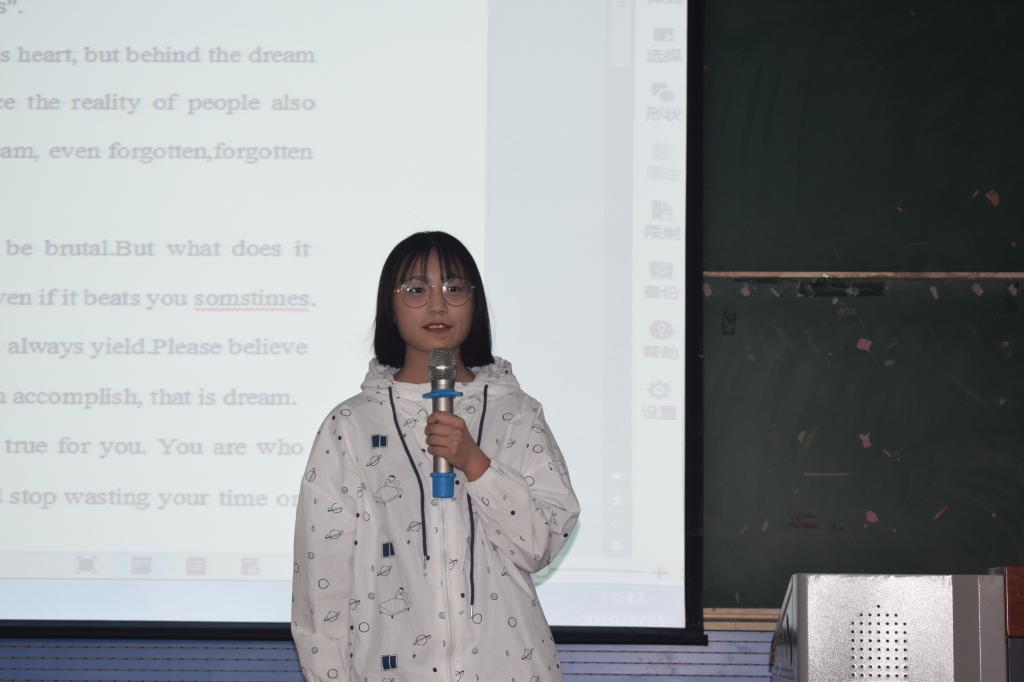 最后,教务科科长时瑞燕总结发言。她首先为同学们敢于展示自己的勇气点赞。时瑞燕老师认为,英语学习重在保持学习兴趣,重在张开嘴巴、表达自己、与人分享。在未来的学习和生活中,希望更多的同学能够积极参加英语协会组织的各项活动中,通过学习英语来提高自己、超越自己。
