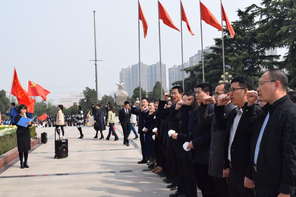 最后,所有党员又重温入党誓词,面对鲜红的党旗,高举右拳,齐声宣誓:“我志愿加入中国共产党,拥护党的纲领,遵守党的章程……”铮铮誓言响彻陵园。