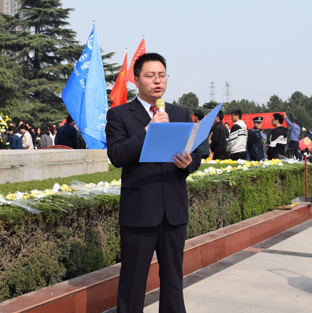 时及清明,郑州市烈士陵园显得格外庄严静穆。活动开始后,首先由两名学生党员代表大家在纪念碑前为烈士敬献花圈,全体同志默哀一分钟。