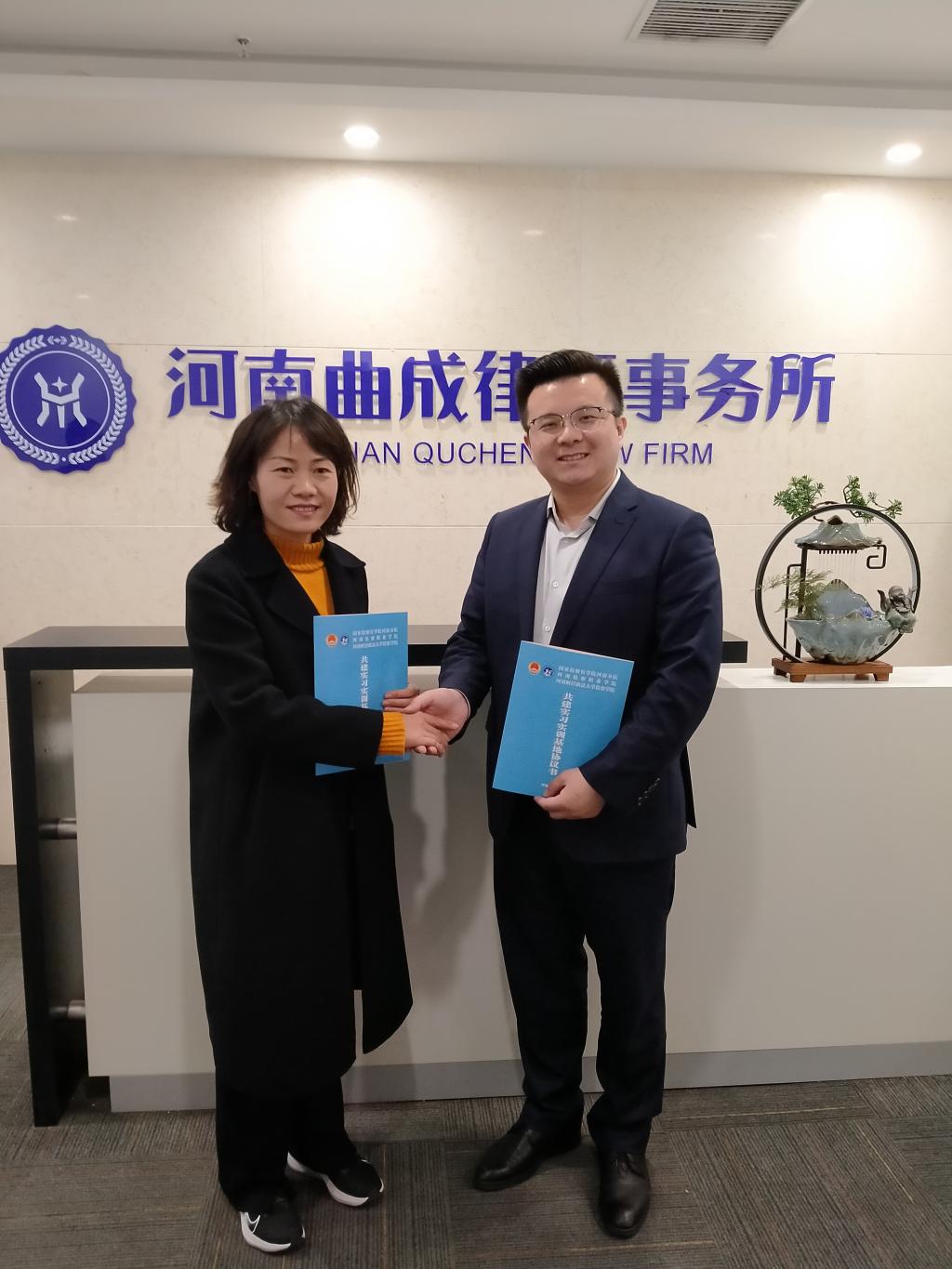 诸侯ok1133官网·河南曲成律师事务所实习实训基地的建立,为诸侯官网开拓校外实习实训基地又增添了一支新的生力军,更为诸侯官网学生提供了一个丰富实践经验、培养创新精神的机会。相信合作双方将会进一步探索合作方式,加强交流,充分发挥实习实训基地的作用,共同促进检察教育事业和律师工作的稳步发展。