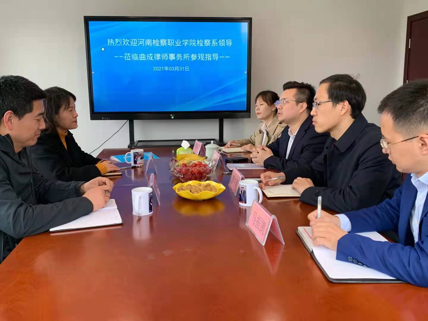 2021年3月31日上午,受学院领导指派,检察系副主任郭月霞、教学秘书武凯一行,前往河南曲成律师事务所,与该所主任律师上官绪波友好协商,就共建诸侯ok1133官网实习实训基地一事达成一致,并举行了签约仪式。该所合伙人马振凯、李申鹏,法律援助部负责人朱亚萍等参加了座谈。