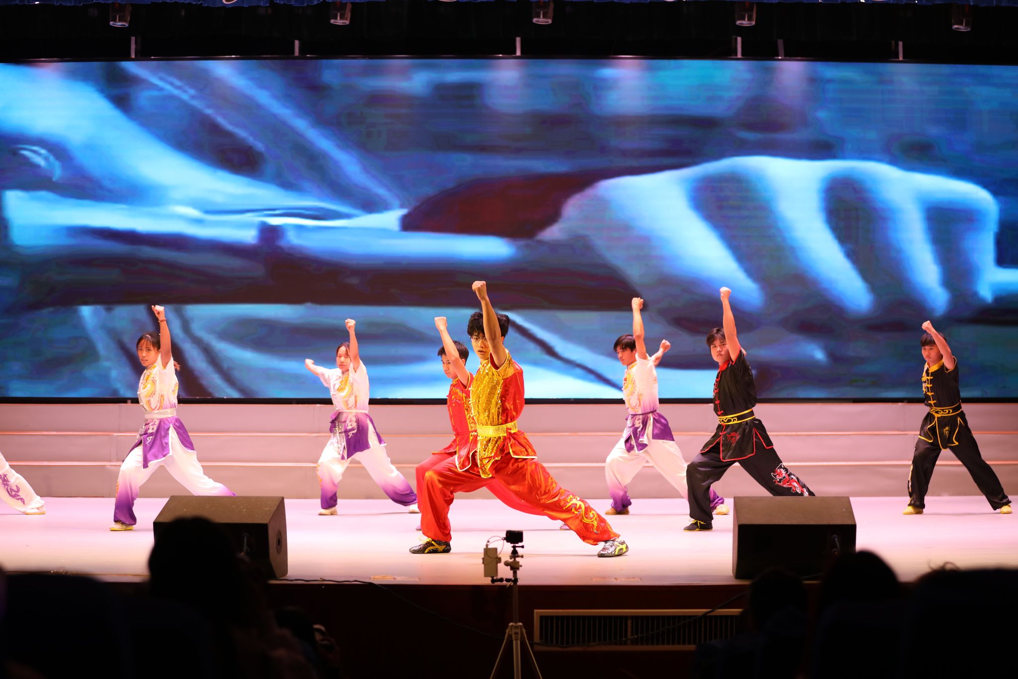 来自吉尔吉斯斯坦的2024级国际交流生映月,与外国语学院罗娜、王艳霞共同演绎了歌曲《price tag》,展现了异国风情的音乐魅力。美术与艺术设计学院和音乐与舞蹈学院的同学们带来了器乐合奏《沧海一声笑》,让人感受到武侠文化的深厚底蕴。文法学院的陈池、智能制造学院的胡哲源以及文法院舞龙队的说唱歌曲《江湖流》,以独特的表演形式和深情的歌词,赢得了观众的阵阵掌声。旅游与文化产业学院的朗诵节目《那一年,中国青年正十八》,则通过不同年代人群十八岁的声音,展现了中国青年的责任与担当。土木与环境工程学院的黄昆鹏带来歌曲《阿尔茨海默的爱》,深情演绎了疾病与爱情之间的纠葛,让人动容。体育学院武术专项班的武术表演《武魂》,则展现了中华武术的博大精深和英雄气概。