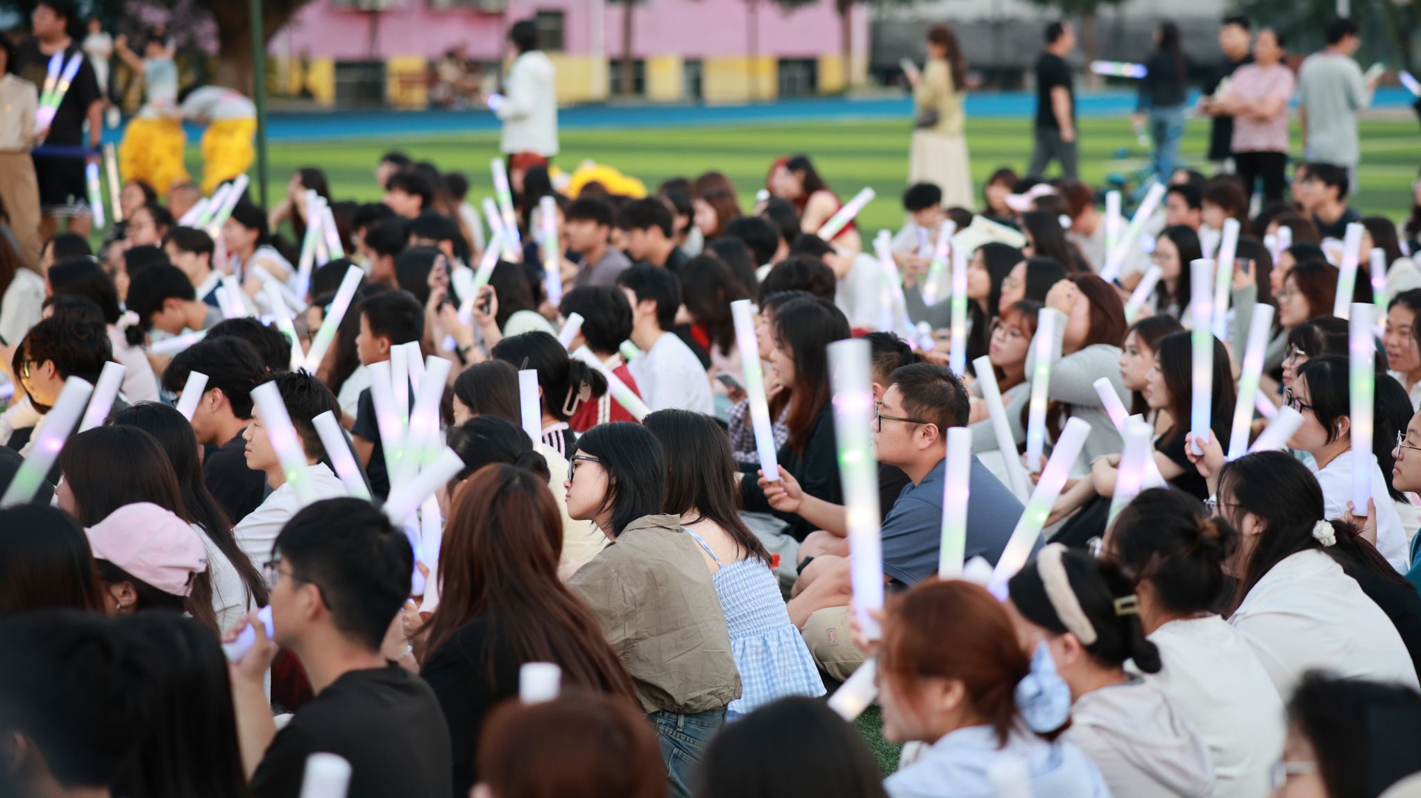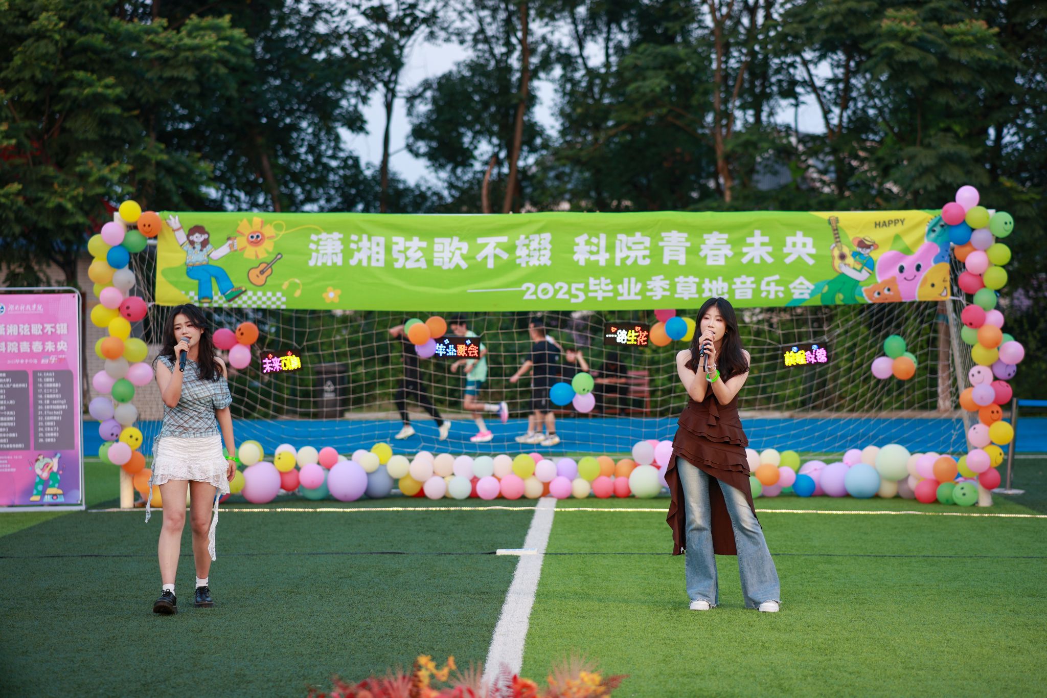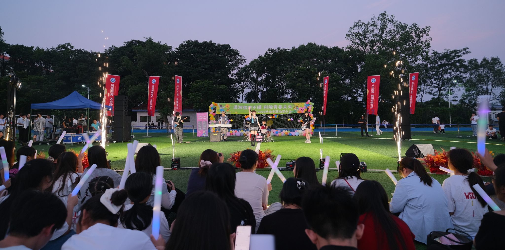 本网讯(记者 王蓉)以歌为帆,奔赴山海!6月3日晚,一场主题为“潇湘弦歌不辍 科院青春未央”的毕业季草地音乐会火热上演,学校田径场化身星光舞台,千余名师生席地而坐,在晚风与旋律中共同见证了一场盛大的校园文化盛宴。