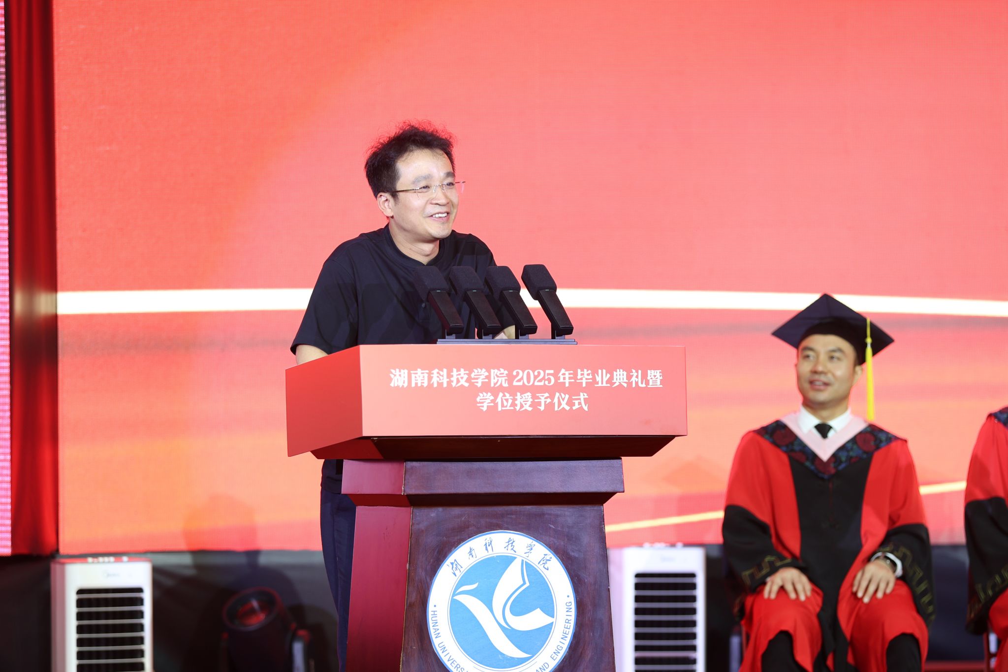 2025届毕业生、智能制造学院电科2102班龙俊和以《找准人生赛道,向未来出发》为题,代表全体毕业生向学校、老师、家人和朋友们致以最崇高的敬意和最深切的感激。他呼吁全体毕业生作未来可期的志高者,作好运加倍的实干者,作风景无限的担当者。