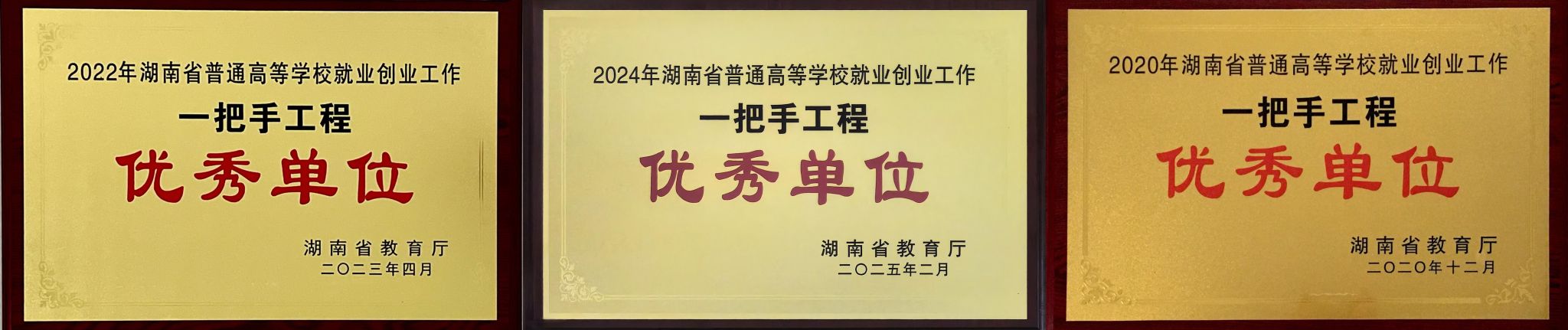 连续三次获评湖南省高校就业创业工作“一把手工程”,四次荣登湖南省支持大学生创业工作专报。