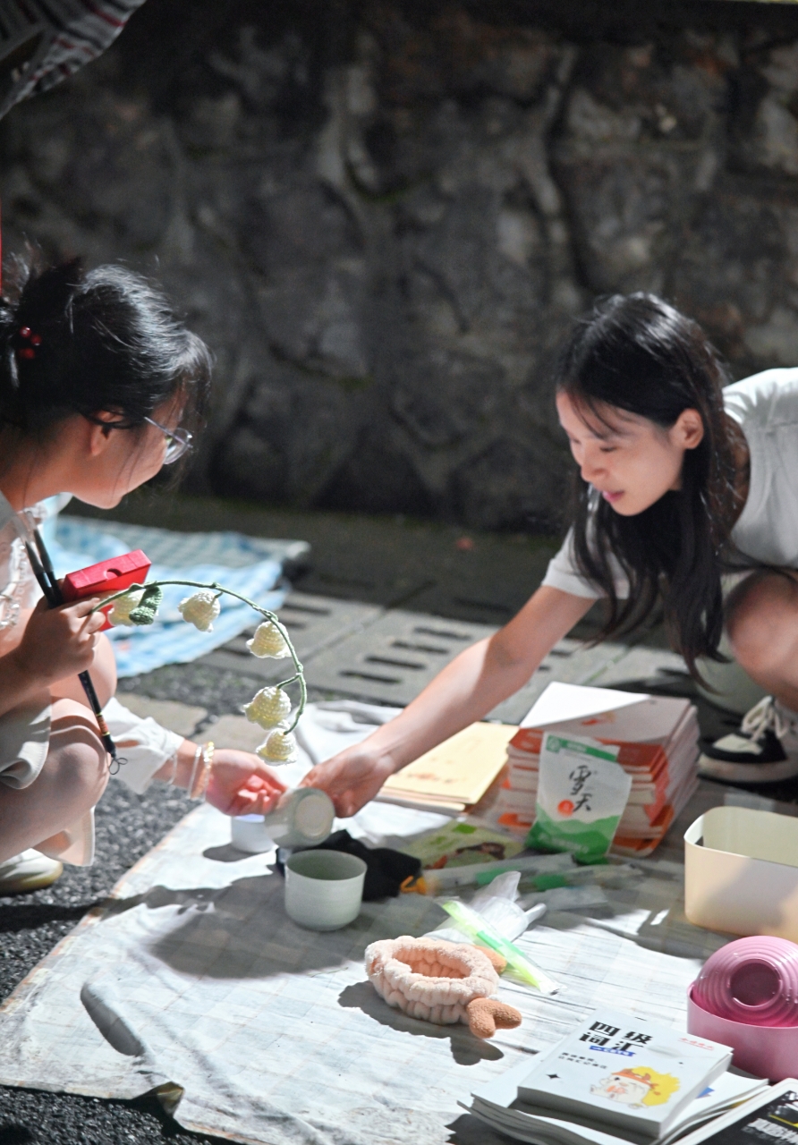 “二手商品文化交易节”对于学生们而言是一场别样的“618”,毕业生们地毯一铺、板凳一摆,出售自己带不走的“商品”和记忆,低年级同学们或独自“捡漏”,或三两好友结伴,穿梭其中,开启新一轮“淘宝”之旅。