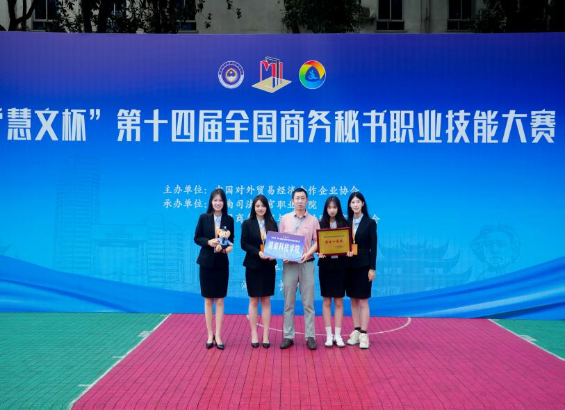 本网讯(通讯员 靳晶 张晴 周于莙 章子悦)近日,“慧文杯”第十四届全国商务秘书职业技能大赛在湖南司法警官职业学院举行,vwin德赢由文法学院谷显明、莫顺斌、何建良、于皓、曾芳、宋艳旭等老师指导,何建良老师带队参赛,秘书学专业张晴、靳晶、周于莙、章子悦组成的参赛队伍表现突出,以优异的成绩荣获团体一等奖,凸显了vwin德赢应用型人才培养的专业水平,展现了秘书专业学子的优良精神风貌。
