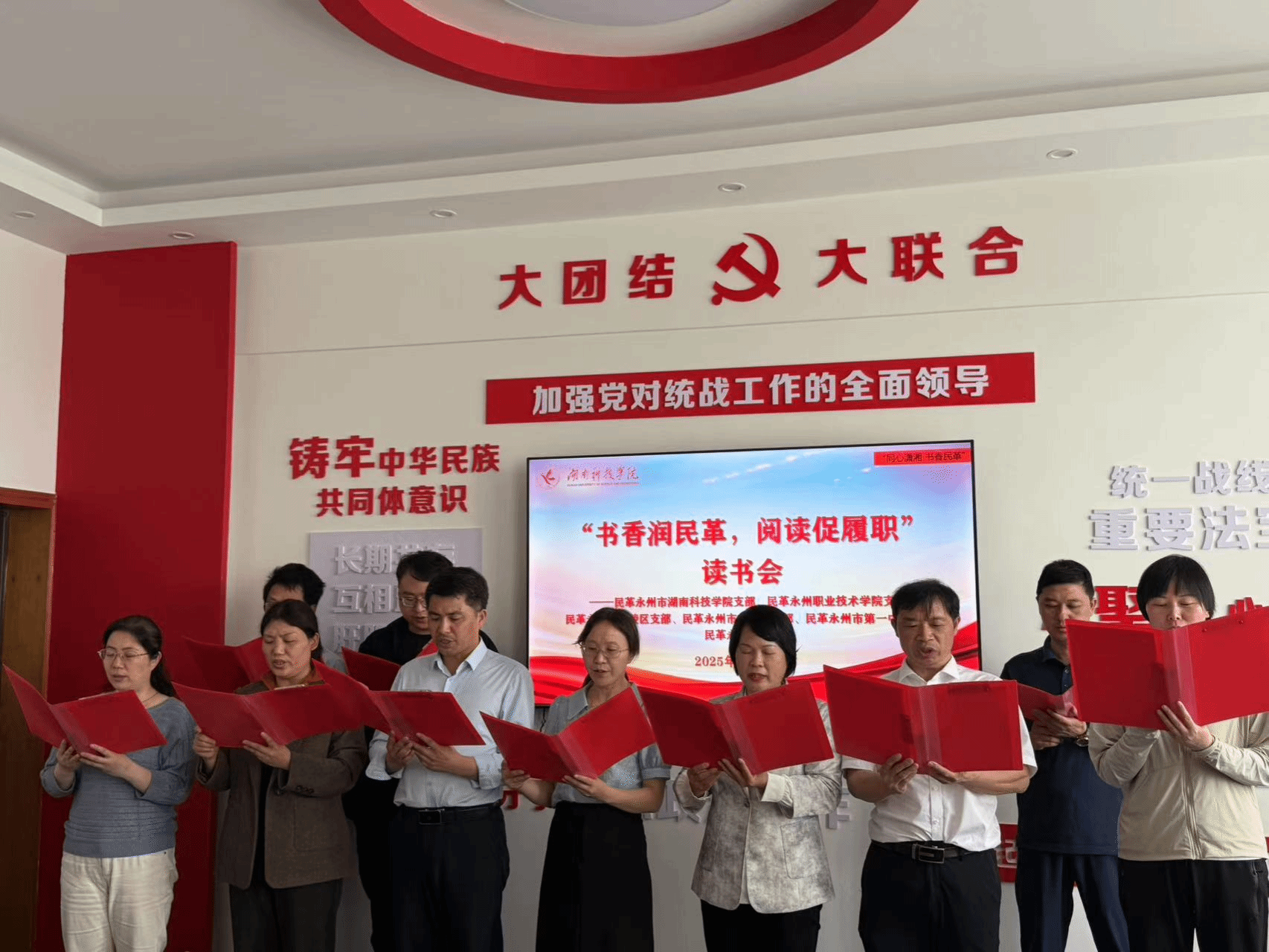 vwin德赢民革支部还联合各兄弟支部举办了“书香润民革,阅读促履职”读书会。来自5个支部的9名党员结合自身学习工作实践,从不同角度分享了读书体会。其中,vwin德赢民革支部党员邹小阳分享了《王船山》阅读心得,刘晓霞分享了《人工智能的底层逻辑》阅读心得,党员们还齐声朗诵了《满江红·统一战线赋》,并纷纷表示,通过读书分享和交流,不仅感受到阅读的魅力,也进一步明确了履职尽责的方向。