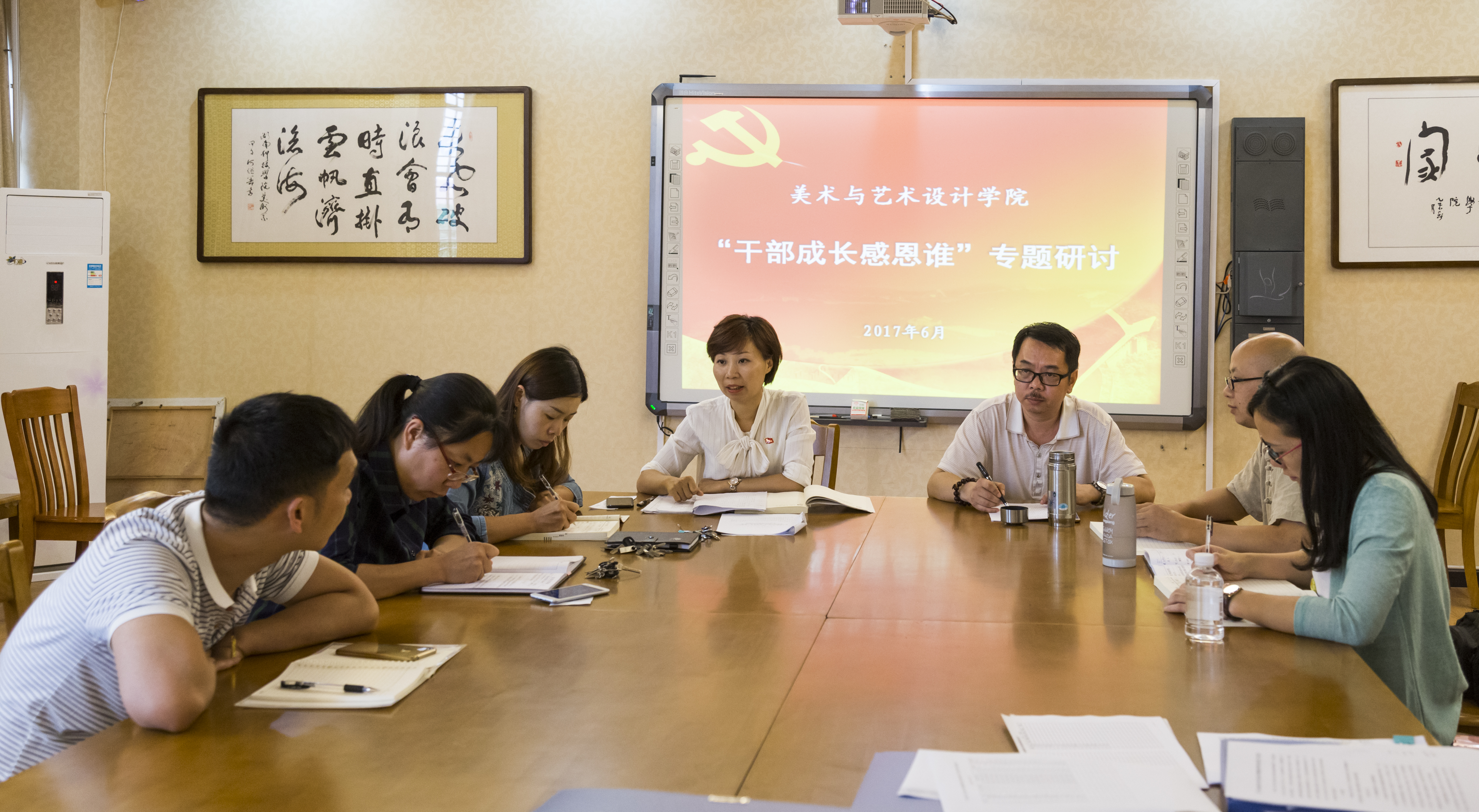 本网讯 6月14日下午,美艺学院党总支组织副处级干部在党员活动室开展了“干部成长感恩谁”专题研讨,活动由该院党总支书记谢筱冬主持。