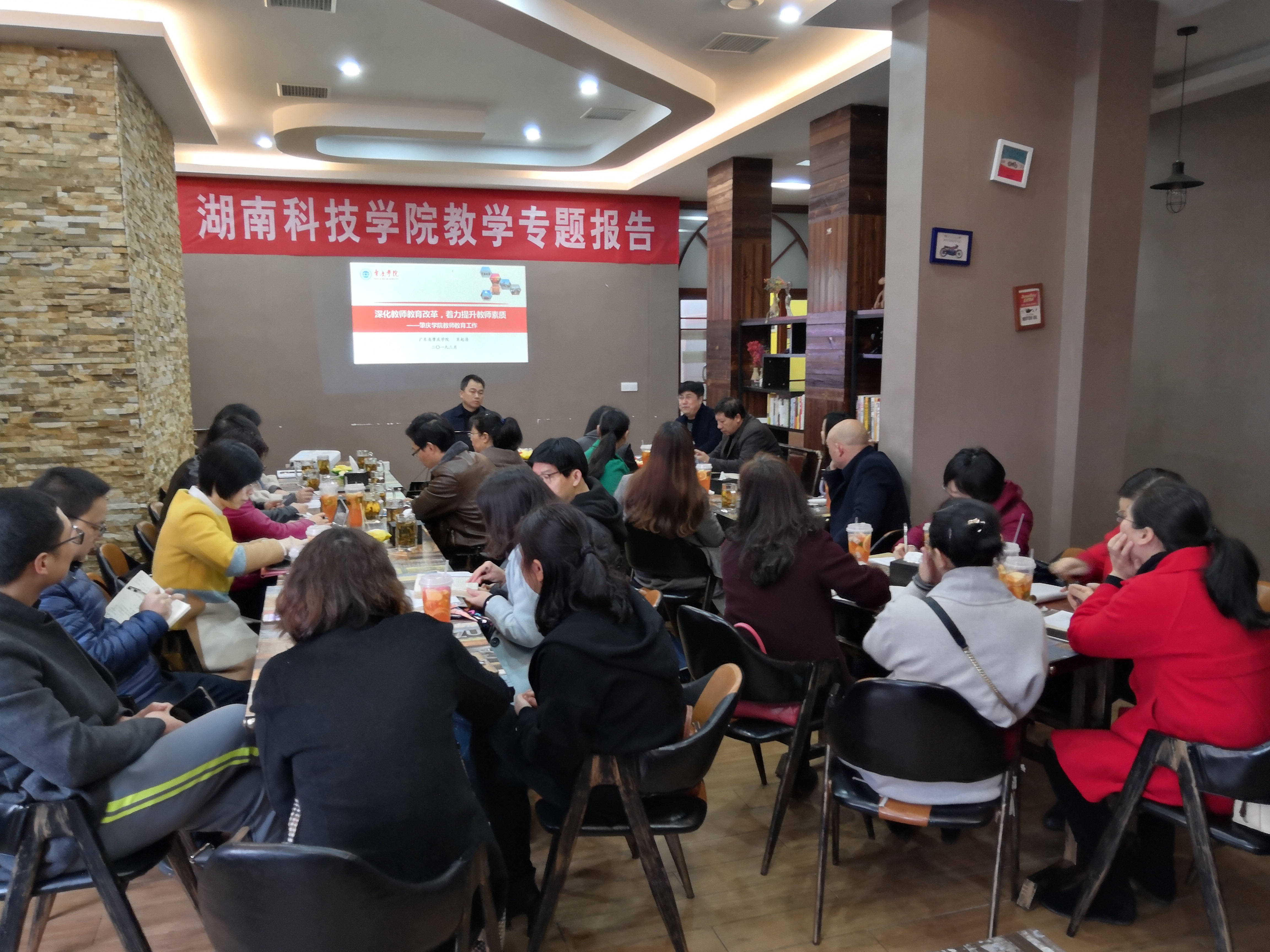 会上,肖起清教授作了题为《深化教师教育改革,着力提升教师素质》的主题报告。他以肇庆学院师范教育建设为例,详细介绍了该校在师范教育课程教学、实训、实践、职后培训、教师教育研究等体系化建设与发展方面的情况,探讨了教师教育人才培养创新、建立开放型教师教育协同机制、完善教师职后培训体系、建设高水平教师教育队伍、师范专业认证等问题。