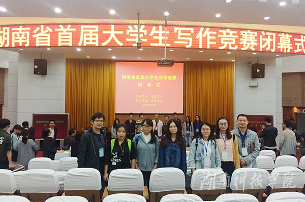 本网讯(通讯员 张能泉)10月22日,由省教育厅主办、湘潭大学承办的湖南省首届大学生写作竞赛在湘潭大学落下帷幕。vwin德赢人文与社会科学学院由刘新征、周繁花两位老师分别指导的陈壹丹、佘倩两位同学荣获三等奖。