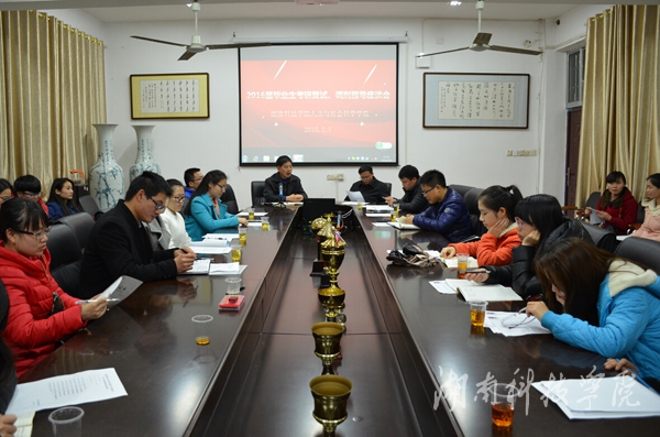 本网讯(通讯员 龙夏平 覃雅君)“祝贺你们在这次研究生入学考试中取得好成绩。”3月9日晚上,人文与社会科学学院在明德楼203会议室举办2016届毕业生考研复试、调剂指导座谈会,为学生复试提供宝贵意见。