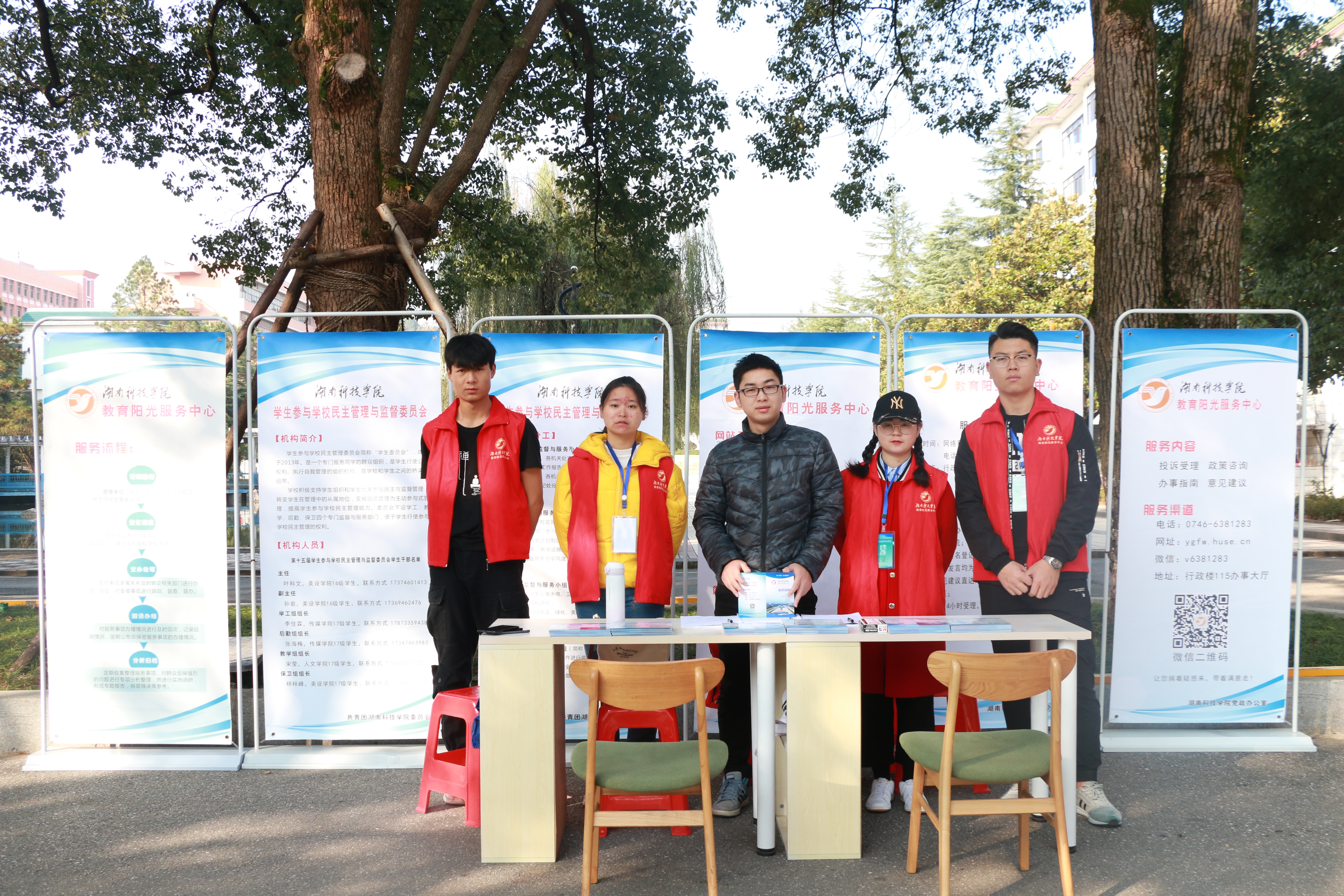 本网讯  11月24日,教育阳光服务中心与学生民主管理与监督委员会在校东门开展户外推广活动,以更贴心的服务走进师生。