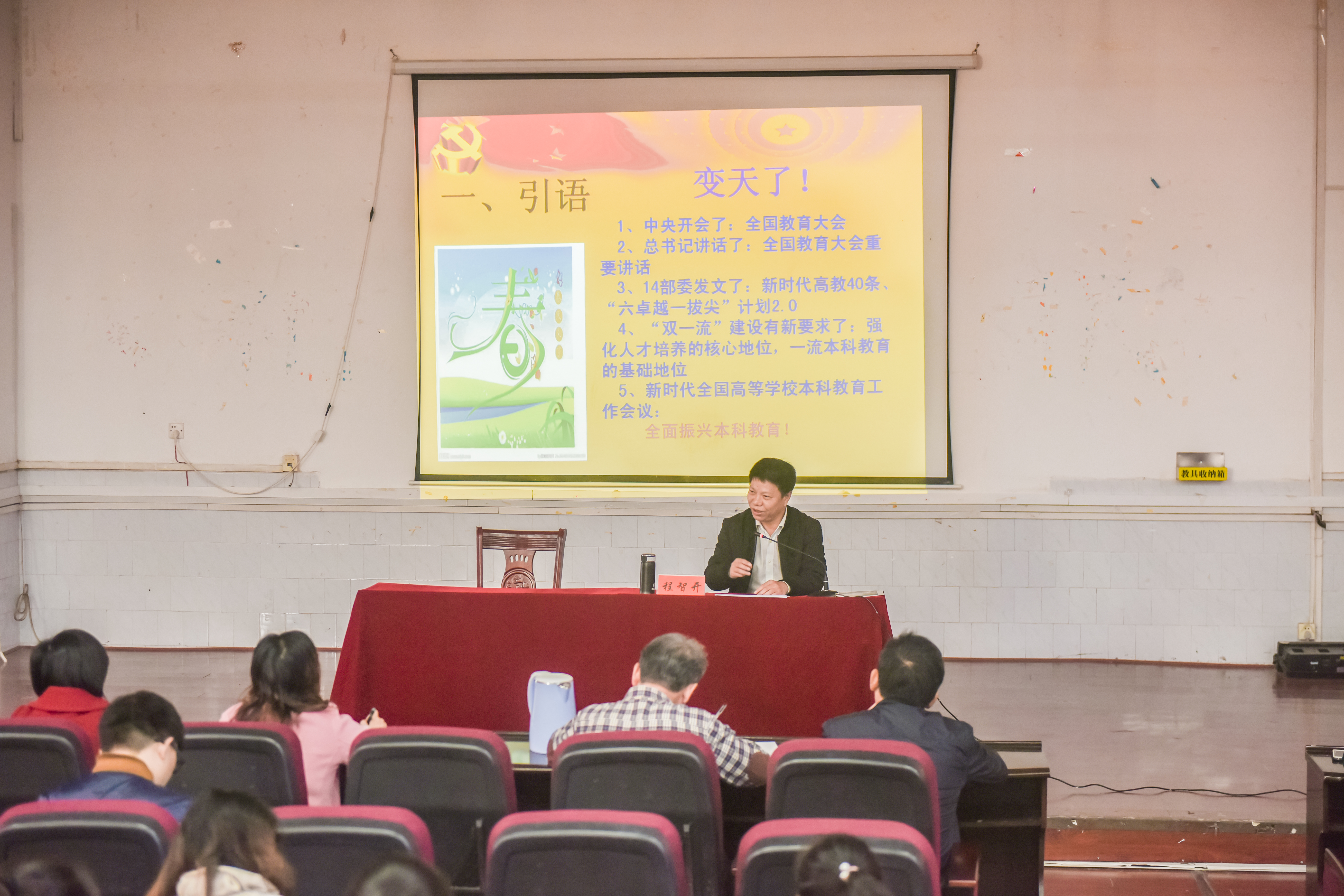 本网讯 11月27日,副校长程智开在博雅楼为外国语学院全体党员、教职工作题为《回归本分 努力开创vwin德赢教育新境界》的辅导报告,传达习近平总书记关于教育的重要论述和全国教育大会精神。