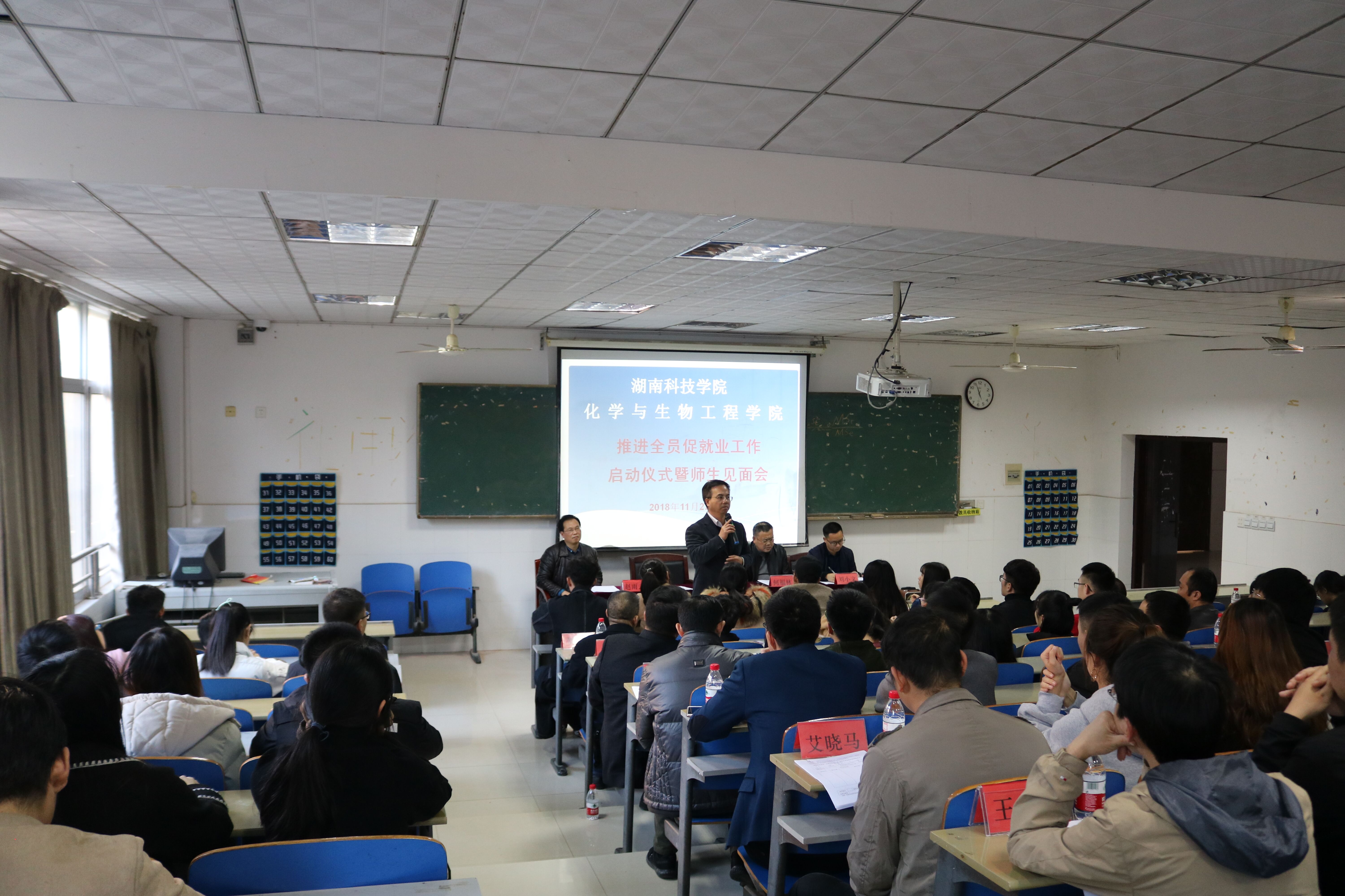 本网讯  11月27日下午,化学与生物工程学院全员促就业工作启动仪式暨师生见面会在逸夫楼323教室举行。校党委书记陈弘作为就业指导老师参加了此次会议,并与学生亲切交流。