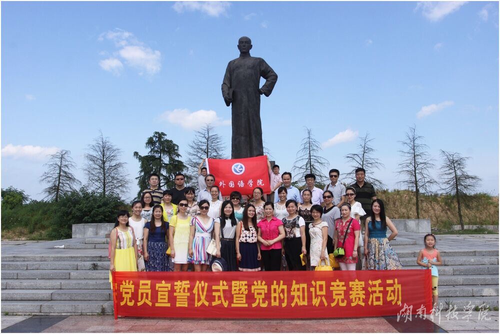 本网讯(通讯员 罗晶)6月27日上午,外国语学院党总支书记罗映红带领该院全体教师党员前往革命先烈李达的故居,开展党员重温誓词暨党的基础知识竞答体验式活动。