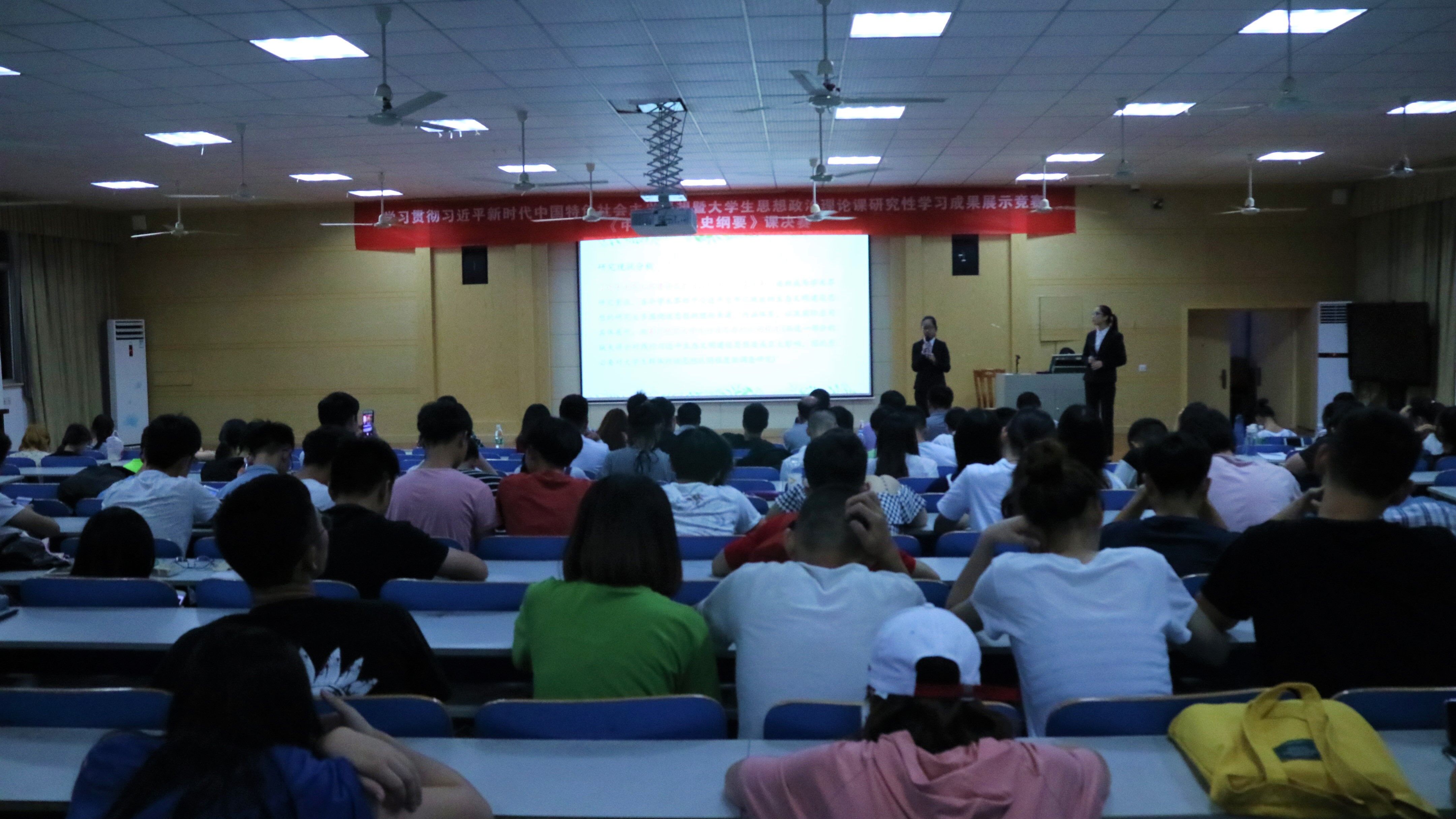 本网讯 6月11日晚,马克思主义学院在致远楼701举办学习贯彻习近平新时代中国特色社会主义思想暨《中国近现代史纲要》研究性学习成果展示竞赛活动。
