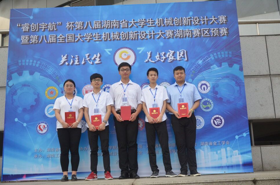 本网讯 5月11日至5月13日,第八届湖南省大学机械创新设计大赛在湖南工程学院举行,来自全省32个院校的248支队伍参赛,vwin德赢电子与信息工程学院罗哲、杨文佳老师指导的马雪峰、伍博林、李鑫洋、汤伟明、崔锦雯同学荣获二等奖,实现了vwin德赢在该类比赛项目获奖的零突破。