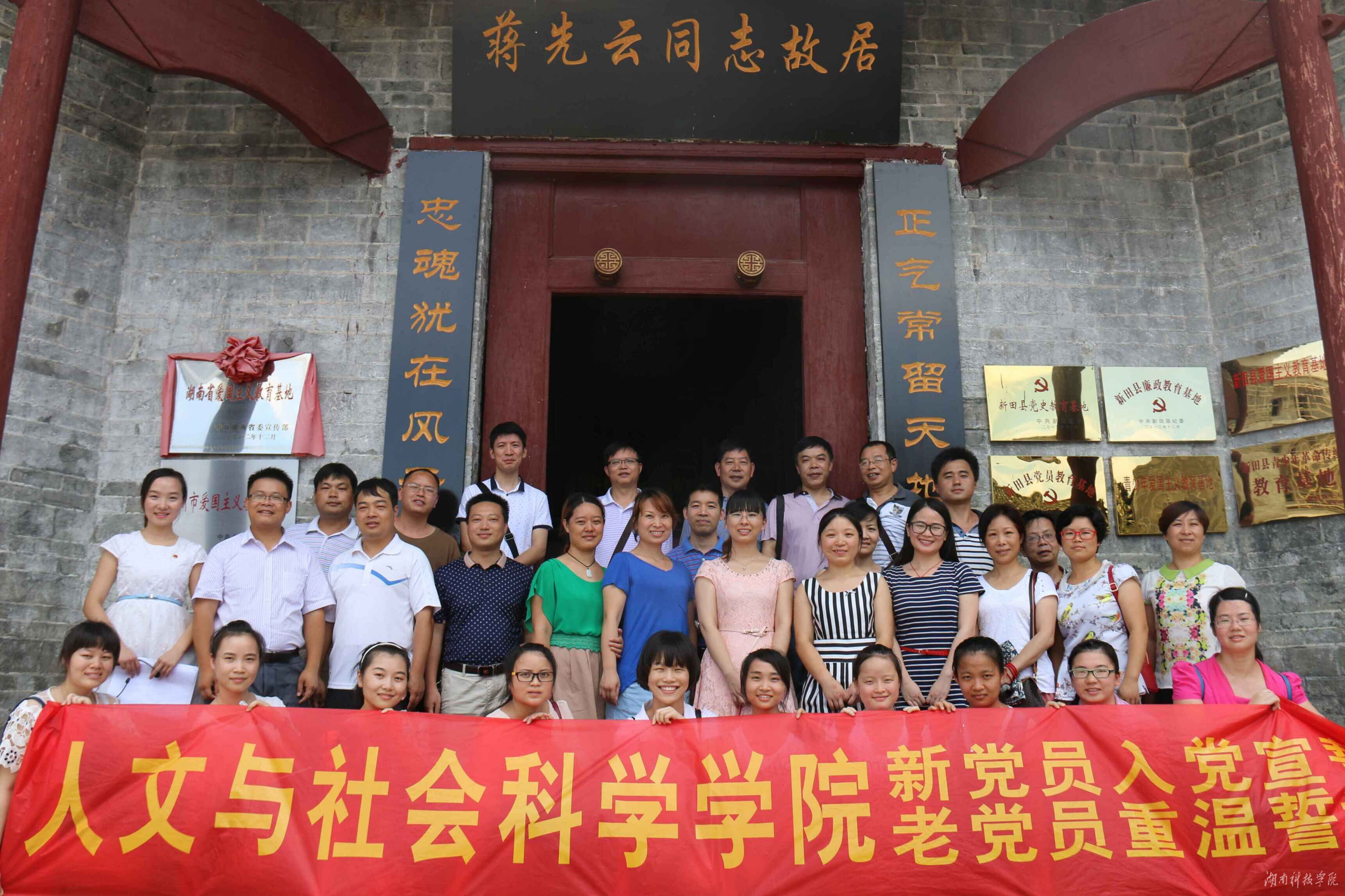 本网讯(通讯员 龙满金)6月28日,建党94周年来临之际,人文与社会科学学院党总支38名师生党员深入省级定点扶贫村——新田县冷水井乡潮水铺村,开展党员“心连心,心系扶贫村”的帮扶座谈会;随后,瞻仰革命先烈蒋先云的故居,游览孝文化公园。该院院长潘雁飞、党总支书记杨能山等出席活动。