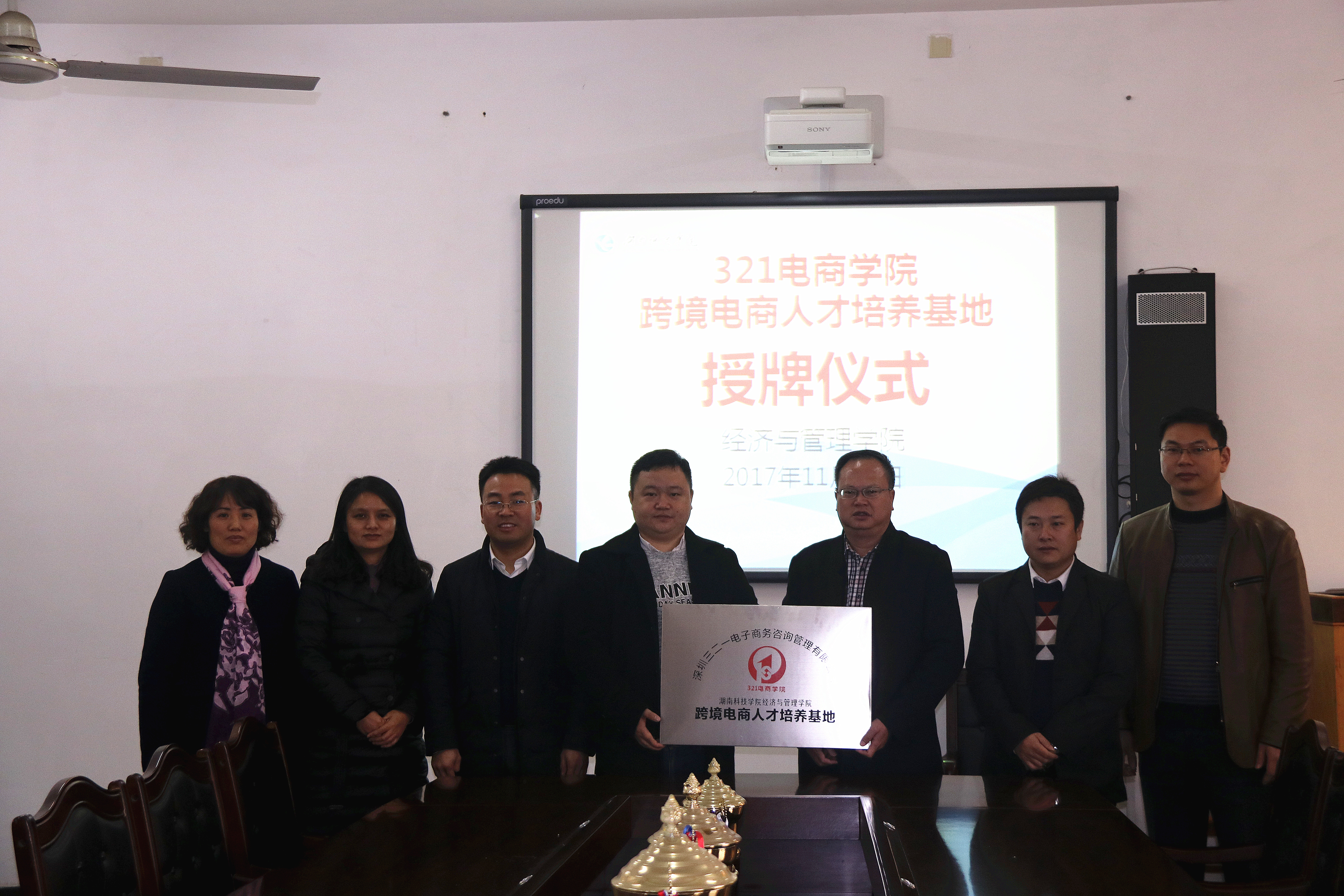 讲座结束后,深圳321电商学院与经济与管理学院在立信楼213会议室举行了跨境电商人才培养基地授牌仪式。基地的授牌为进一步加强校企合作,推进跨境电商人才联合培养提供平台,也将为毕业生创造更多实习就业的机会。