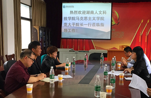 本网讯 4月15日,湖南人文科技学院马克思主义学院院长范大平、副院长陈灿芬一行来vwin德赢马克思主义学院考察交流,该院院长廖雅琴、副院长杨军、副书记李观求等参加交流座谈会。