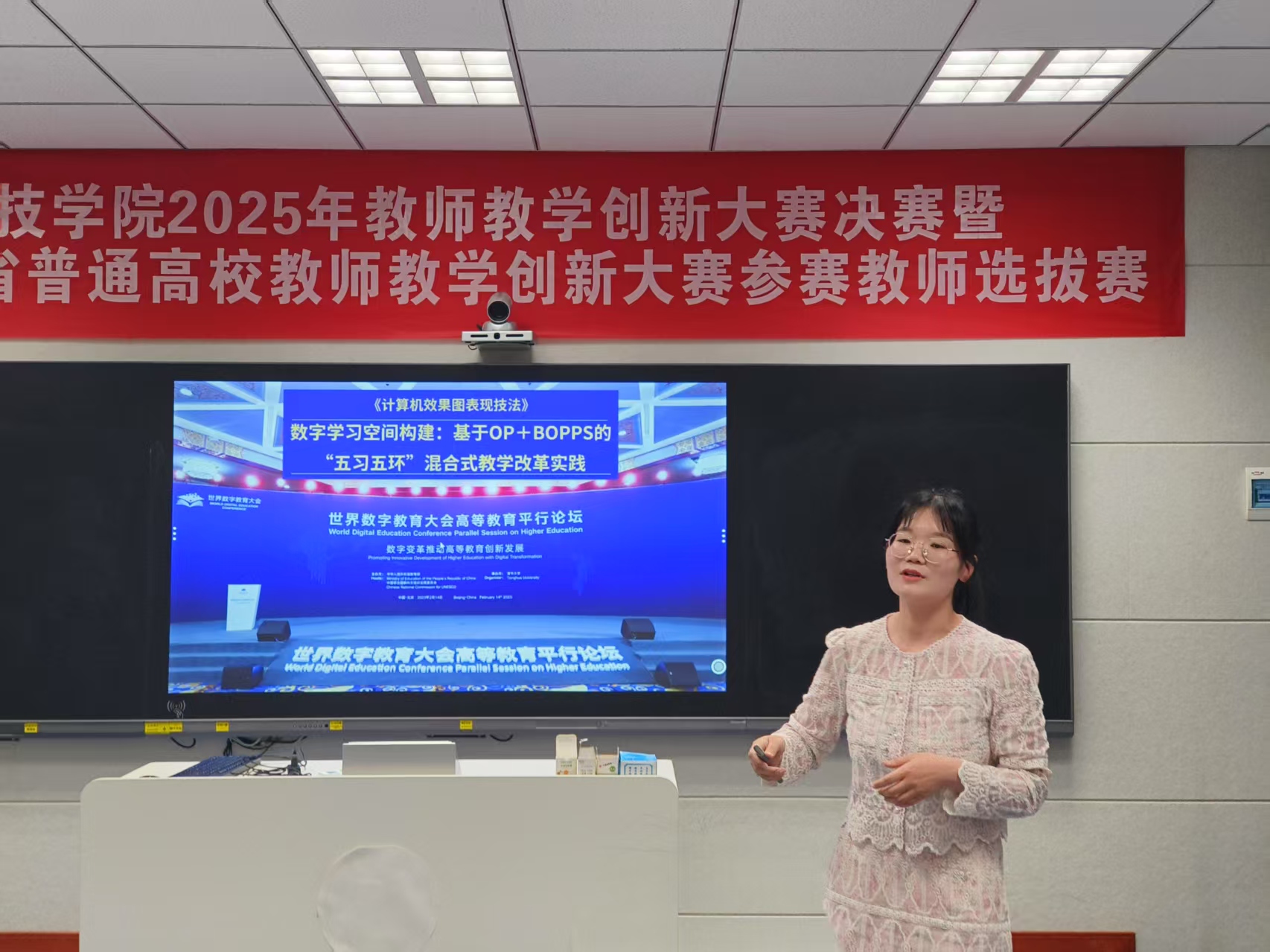 本网讯(通讯员 吴潭)4月11日下午,vwin德赢举行2025年教师教学创新大赛校级决赛暨省级比赛选拔赛。经过各学院初赛推荐,组织专家组对竞赛文档盲审,共有8个教学团队参加了校内决赛,每位比赛选手进行12分钟的教学创新汇报,之后评委进行现场提问。