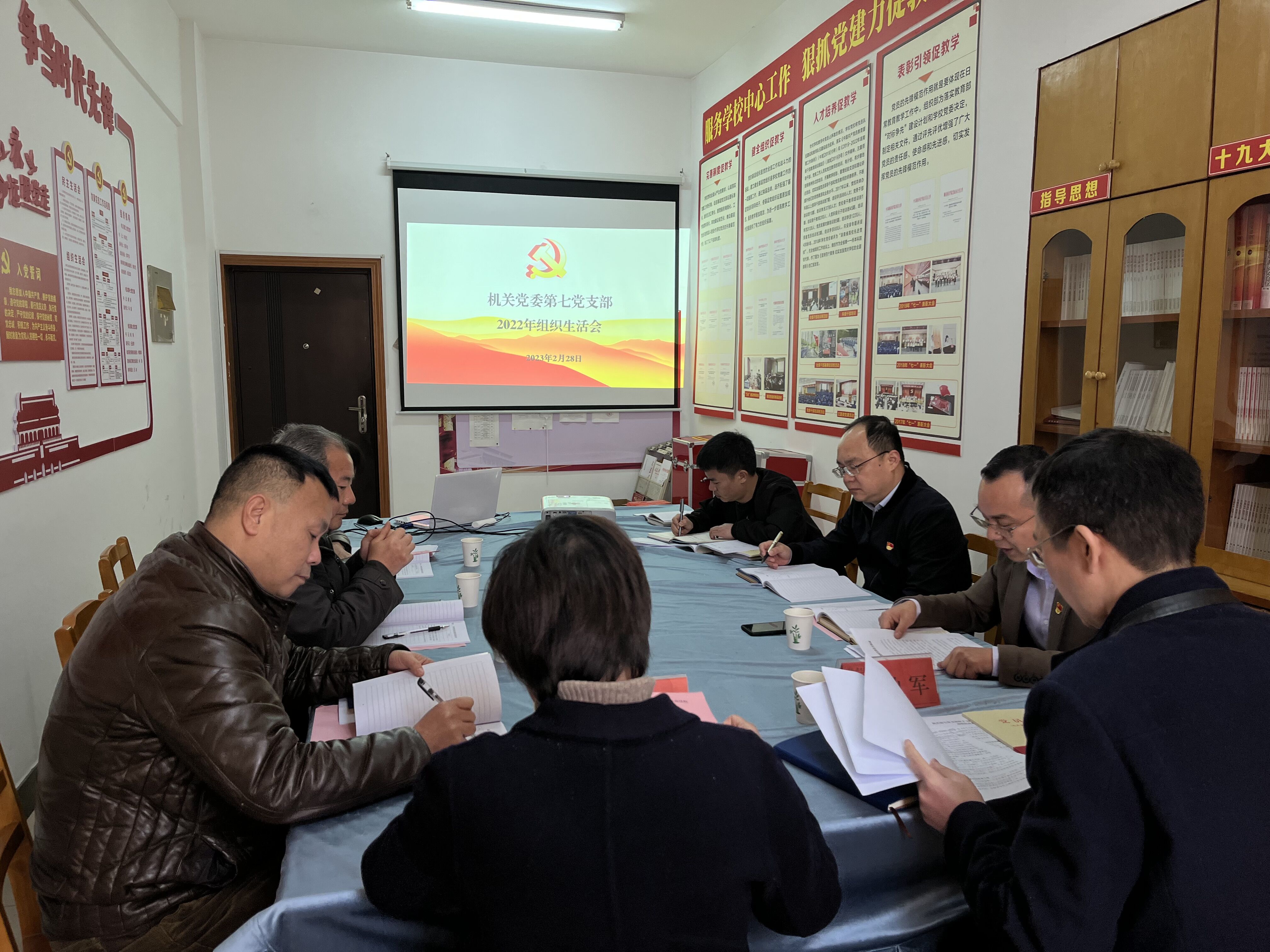 本网讯(通讯员覃小明)28日上午,机关党委第七党支部在行政楼714召开2022年组织生活会。党委委员、纪委书记陈灿军以普通党员身份参加组织生活会,机关党委委员、审计处副处长周昕同志到会指导并进行点评。会议由支部副书记朱晶主持,支部全体党员参加。