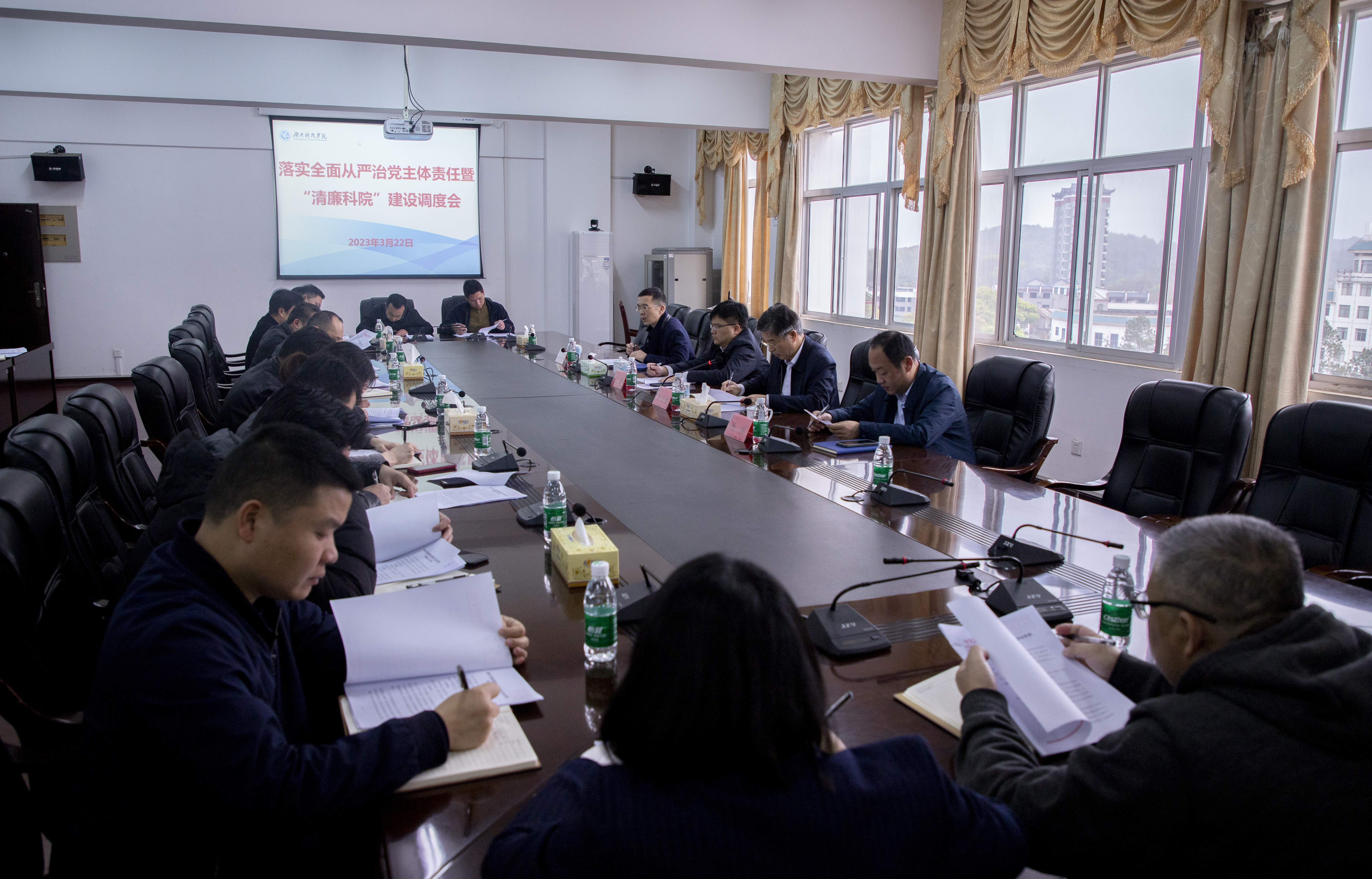 本网讯(通讯员覃小明)3月22日上午,学校召开落实全面从严治党主体责任暨“清廉科院”建设调度会,党委副书记、校长李钢,党委副书记宋宏福,纪委书记陈灿军,党委委员、组织部部长杨涛出席。会议由宋宏福主持。
