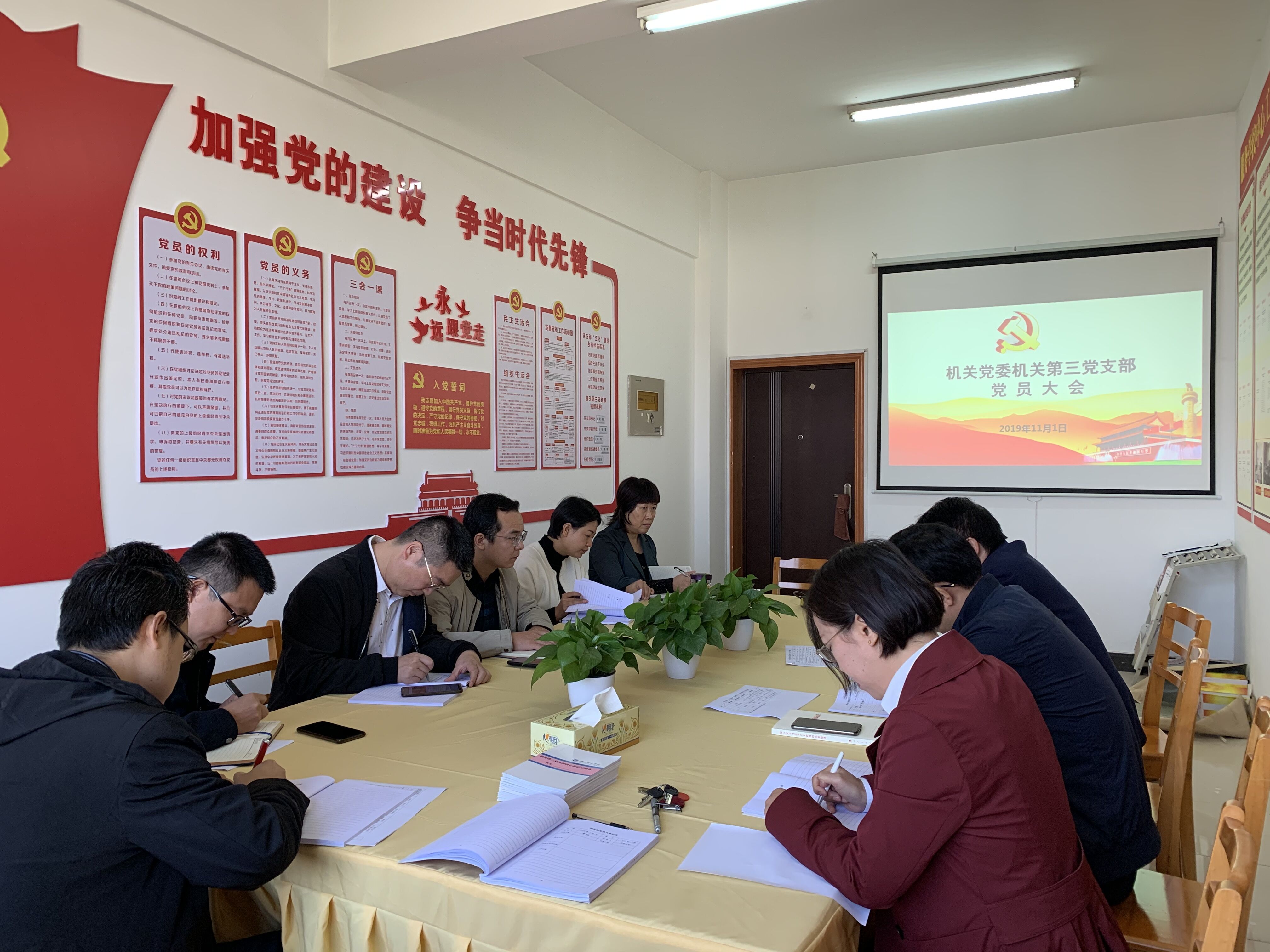 11月1日上午,机关党委机关第三支部在行政楼714会议室召开支部党员大会,支部书记黄栋同志主持。会议研究了部署了支部“五化”建设的相关工作,针对上周学校检查组提出的相关问题,逐一提出了整改措施,并责任到人,要求支部全体同志高度重视,进一步提高认识,端正态度,规范工作,以支部建设规范化推动部门工作健康有序开展。会议还研究部署了支部11月“不忘初心、牢记使命”主题教育的相关工作。