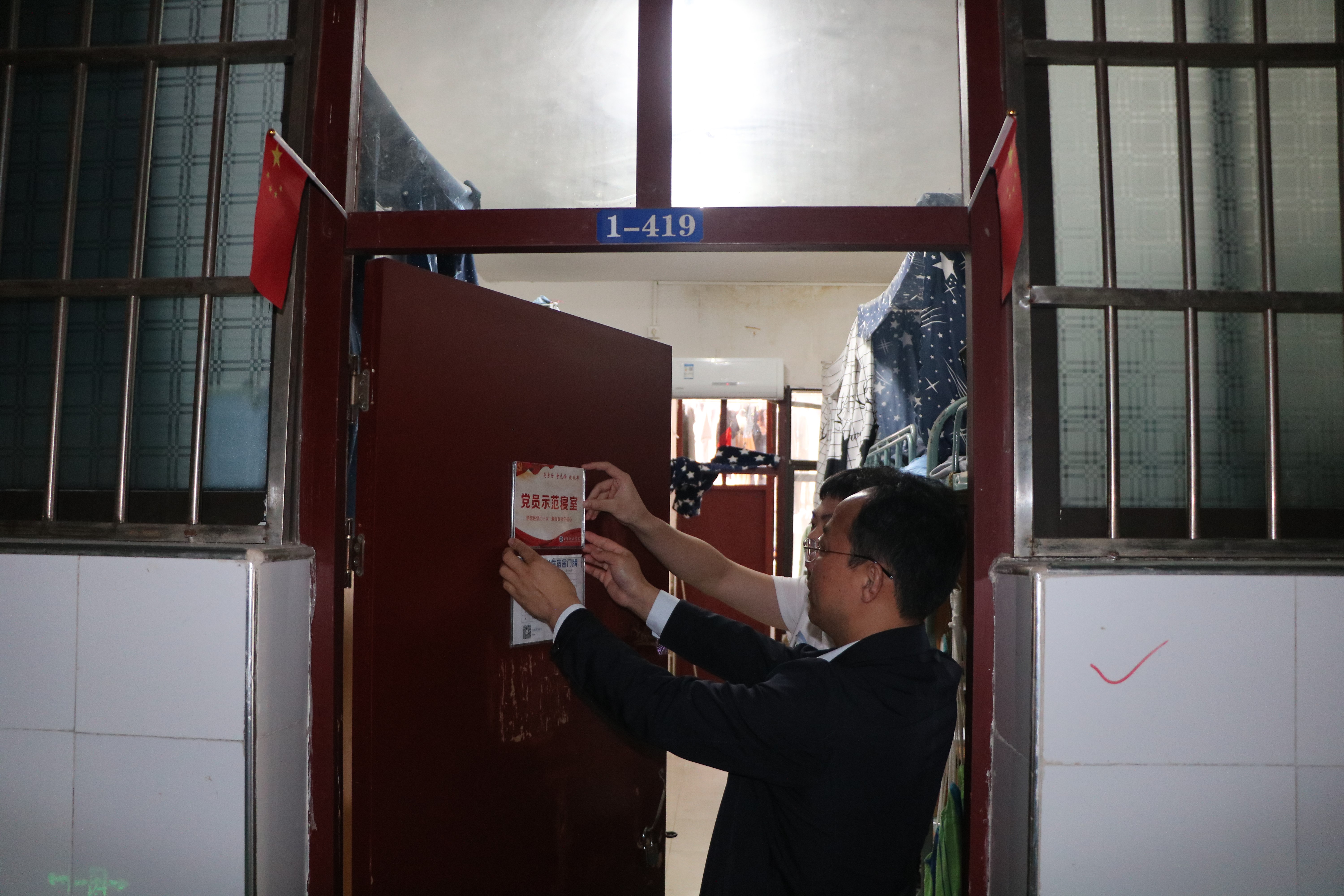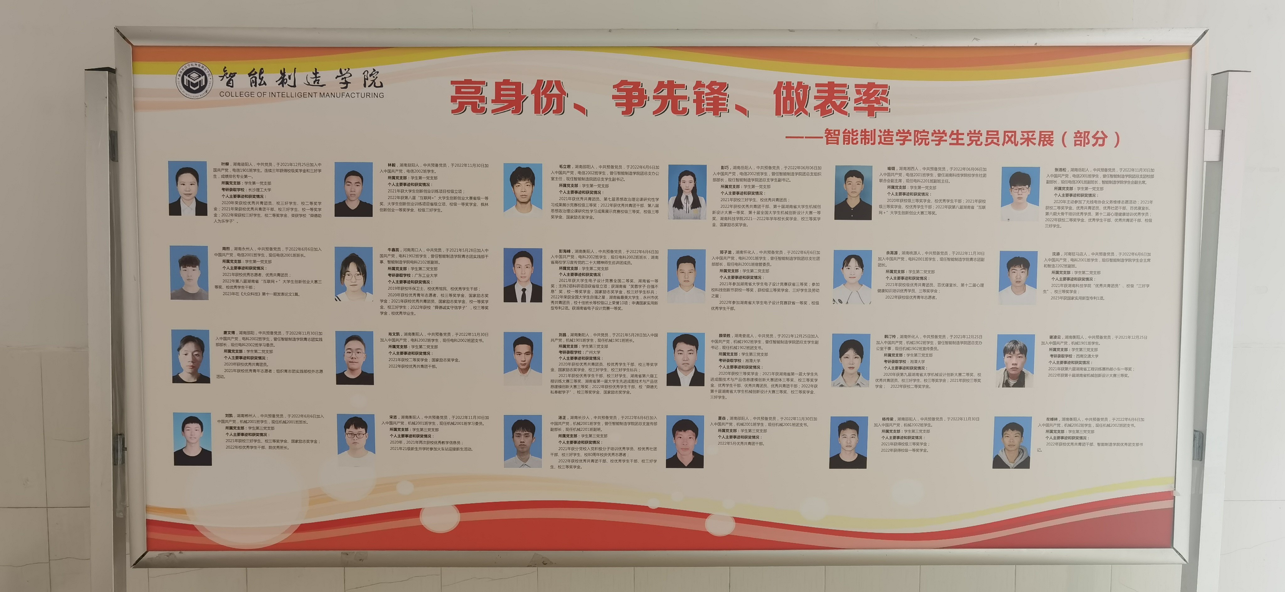 强化身份意识,接受群众监督。充分发挥头雁效应,打造清廉生态,深入开展“一警示牌一桌面一平台”廉洁文化建设活动。学院为领导班子成员、科级干部、系主任和辅导员制作颁发“岗位廉洁风险警示牌”;为全院39间学生党员寝室悬挂“党员示范寝室”标牌,提醒学生党员时刻做到“廉洁自律守初心”;在学院大厅安放“亮身份、争先锋、做表率——学生党员风采展”展板。