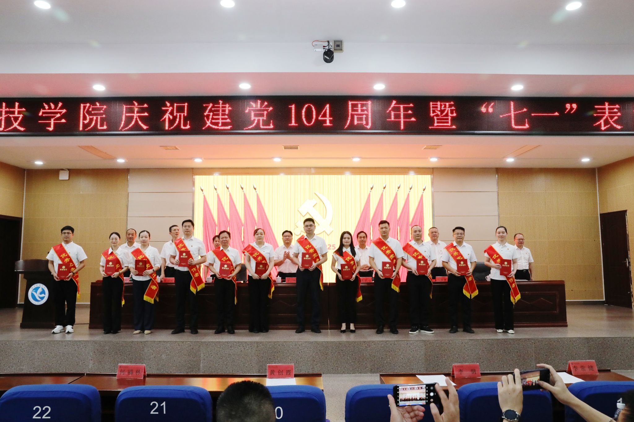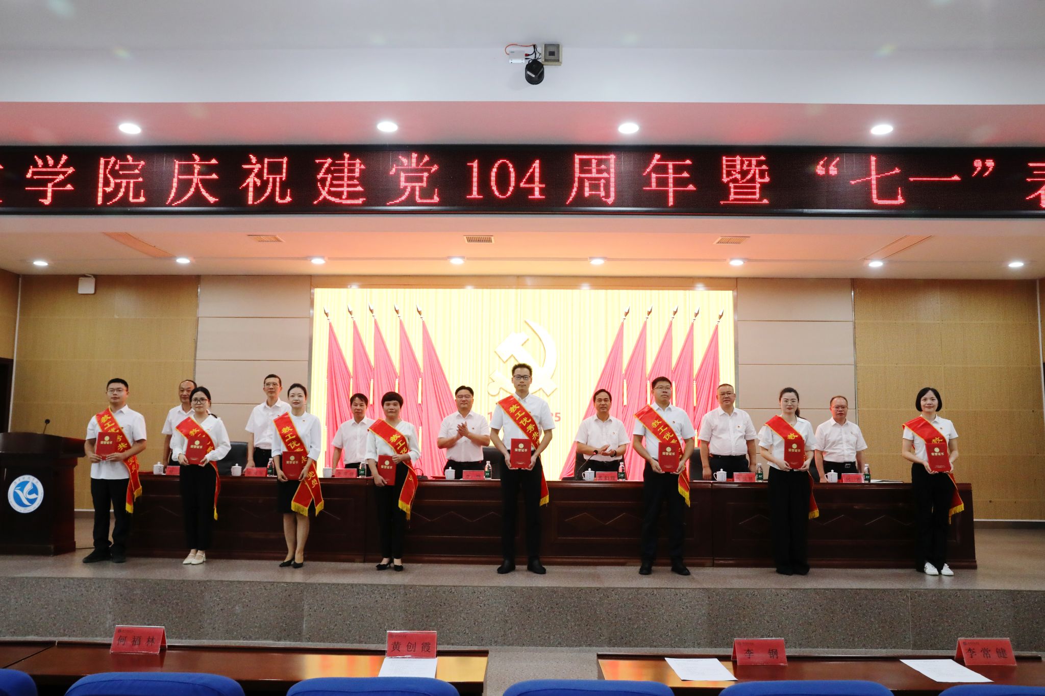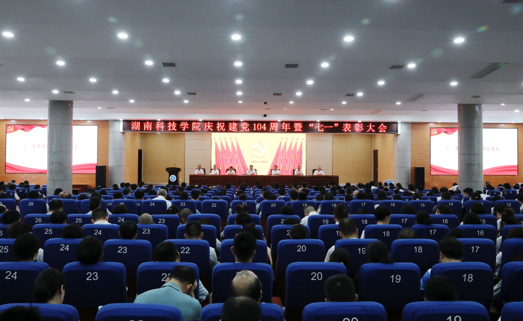 本网讯(记者 向薛峰 摄影 谢志豪)7月1日,学校在潇湘大讲堂举行庆祝中国共产党成立104周年暨“七一”表彰大会。全体党委委员、受表彰对象、党员中层干部和全体教职工党员参加会议。会议由校党委副书记、校长黄创霞主持。