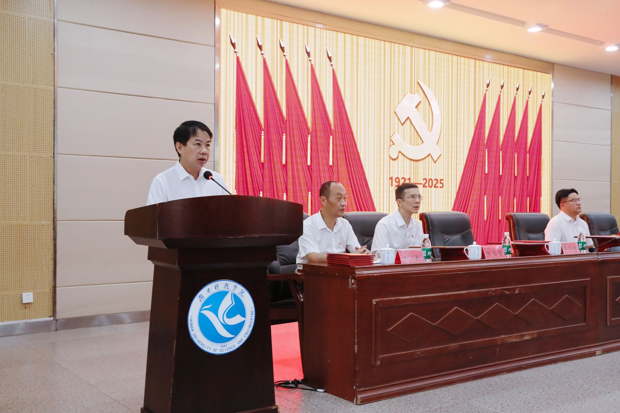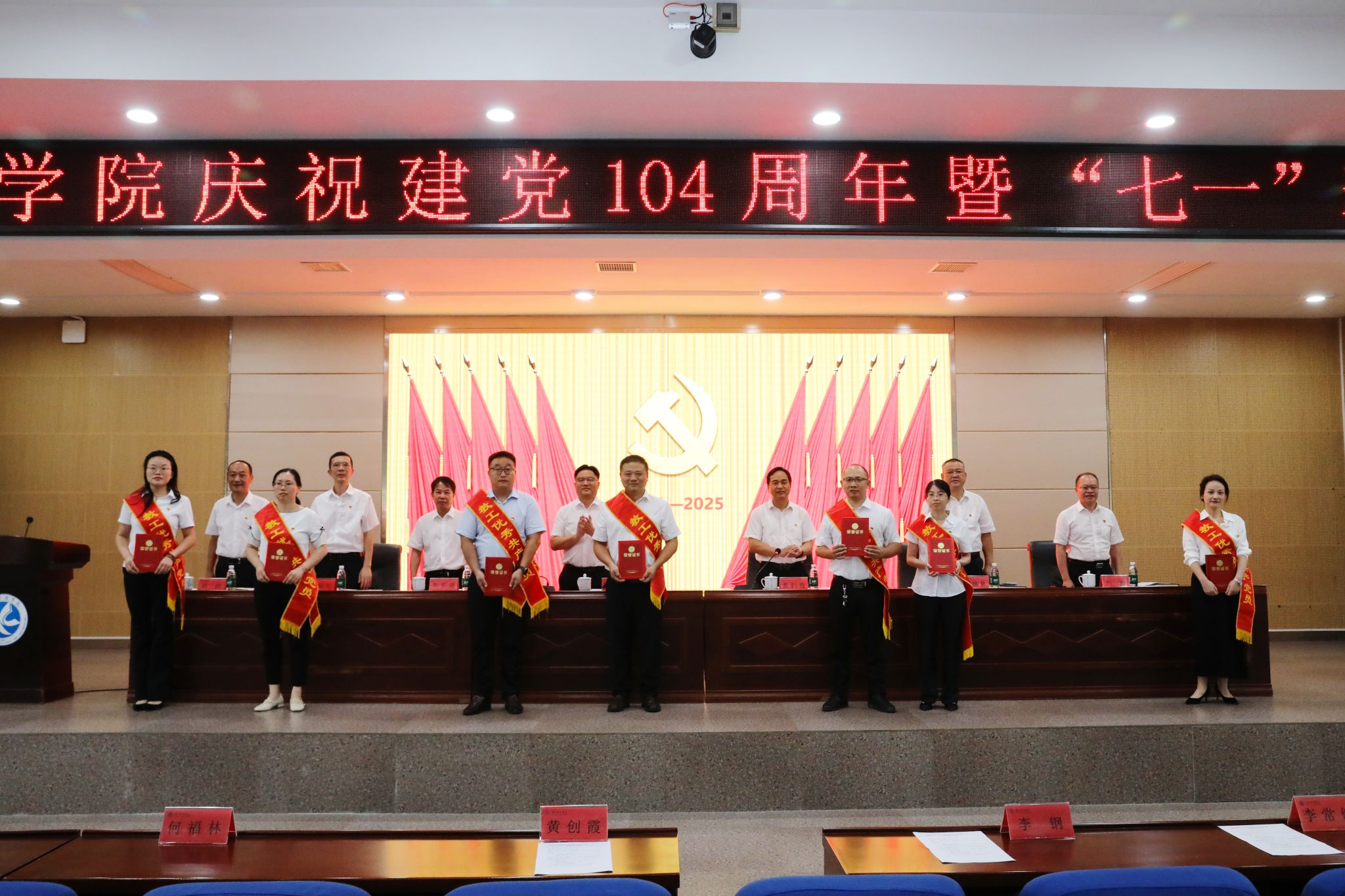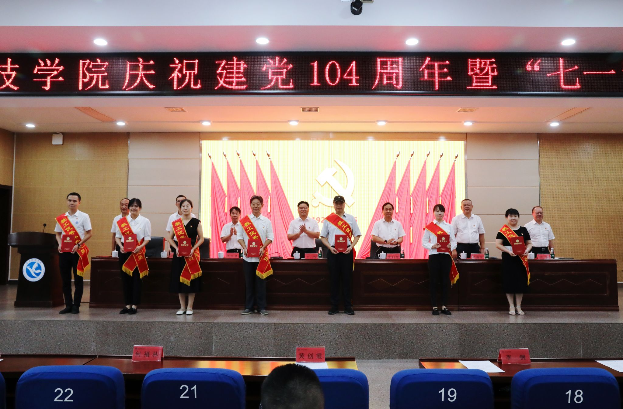 本网讯(记者 向薛峰 摄影 谢志豪)7月1日,学校在潇湘大讲堂举行庆祝中国共产党成立104周年暨“七一”表彰大会。全体党委委员、受表彰对象、党员中层干部和全体教职工党员参加会议。会议由校党委副书记、校长黄创霞主持。