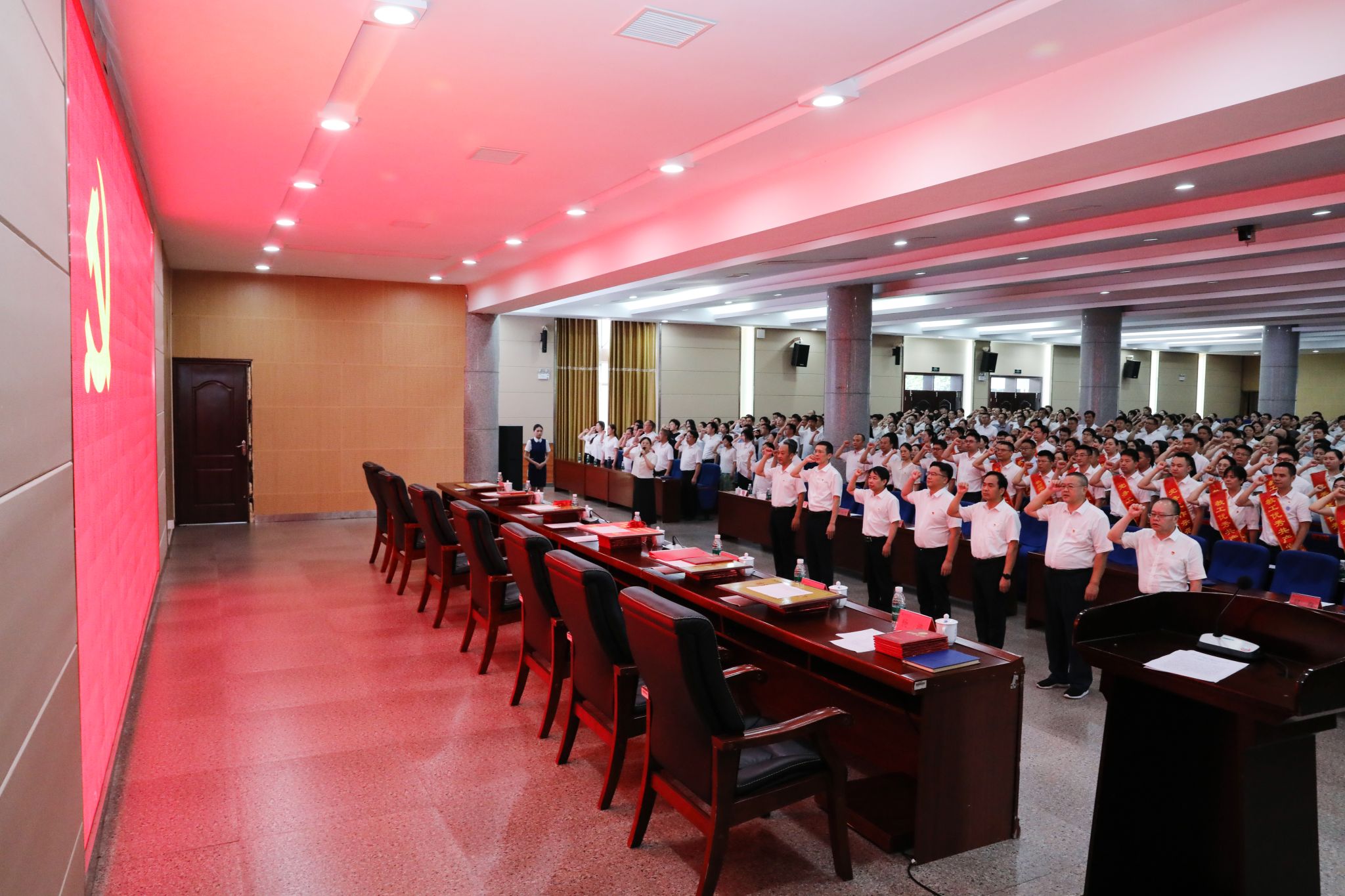 全体党员奏唱国歌、重温入党誓词。