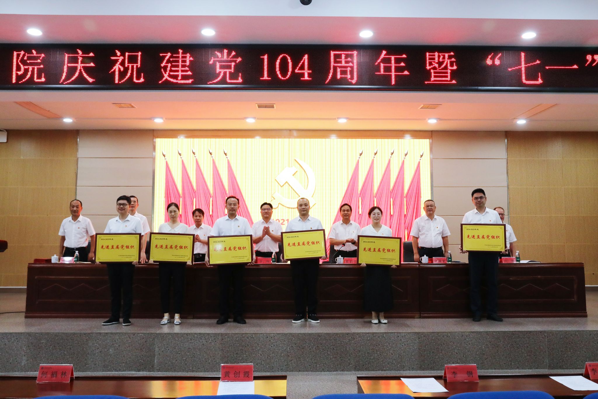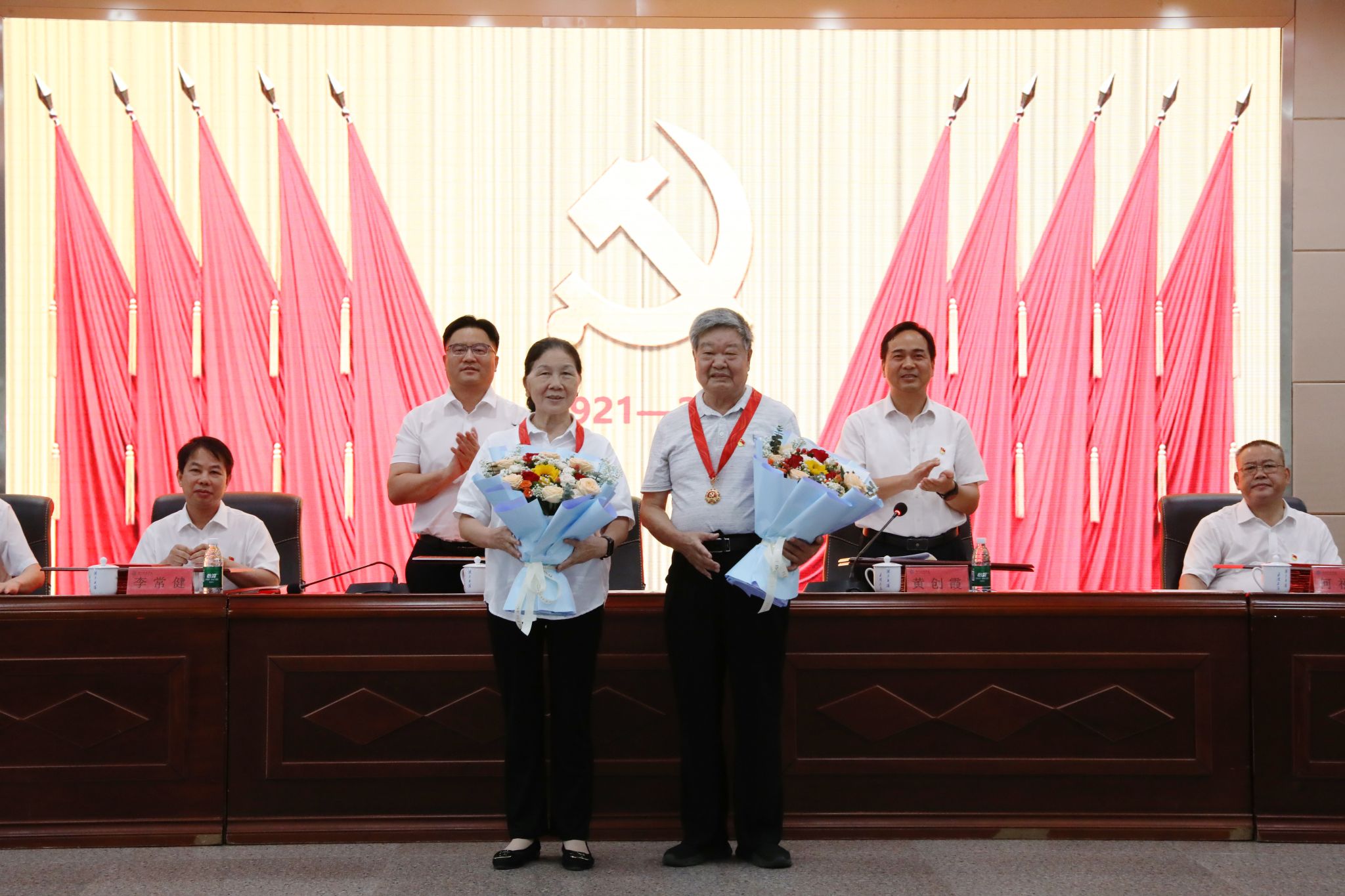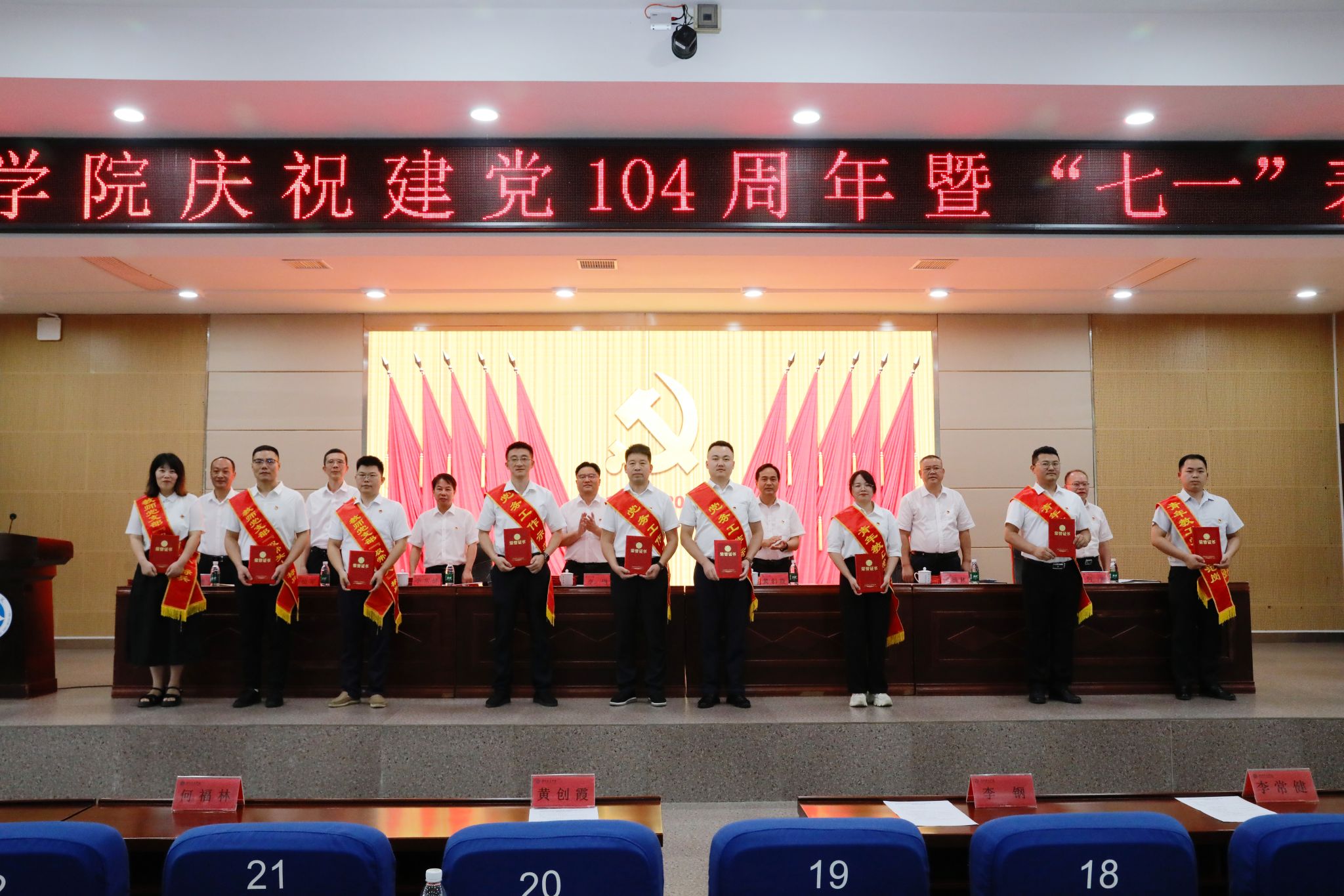 党委委员、副校长李常健宣读“七一”表彰决定,对“光荣在党50年”纪念章获得者,全国高校“双带头人”教师党支部书记“强国行”专项行动团队,全省高校党组织“对标争先”建设计划第四批项目获评单位及个人,学校先进直属党组织、教师党支部书记“双带头人”标兵、党务工作示范岗、青年教工党员示范岗、优秀党务工作者和优秀共产党员提出表彰。
