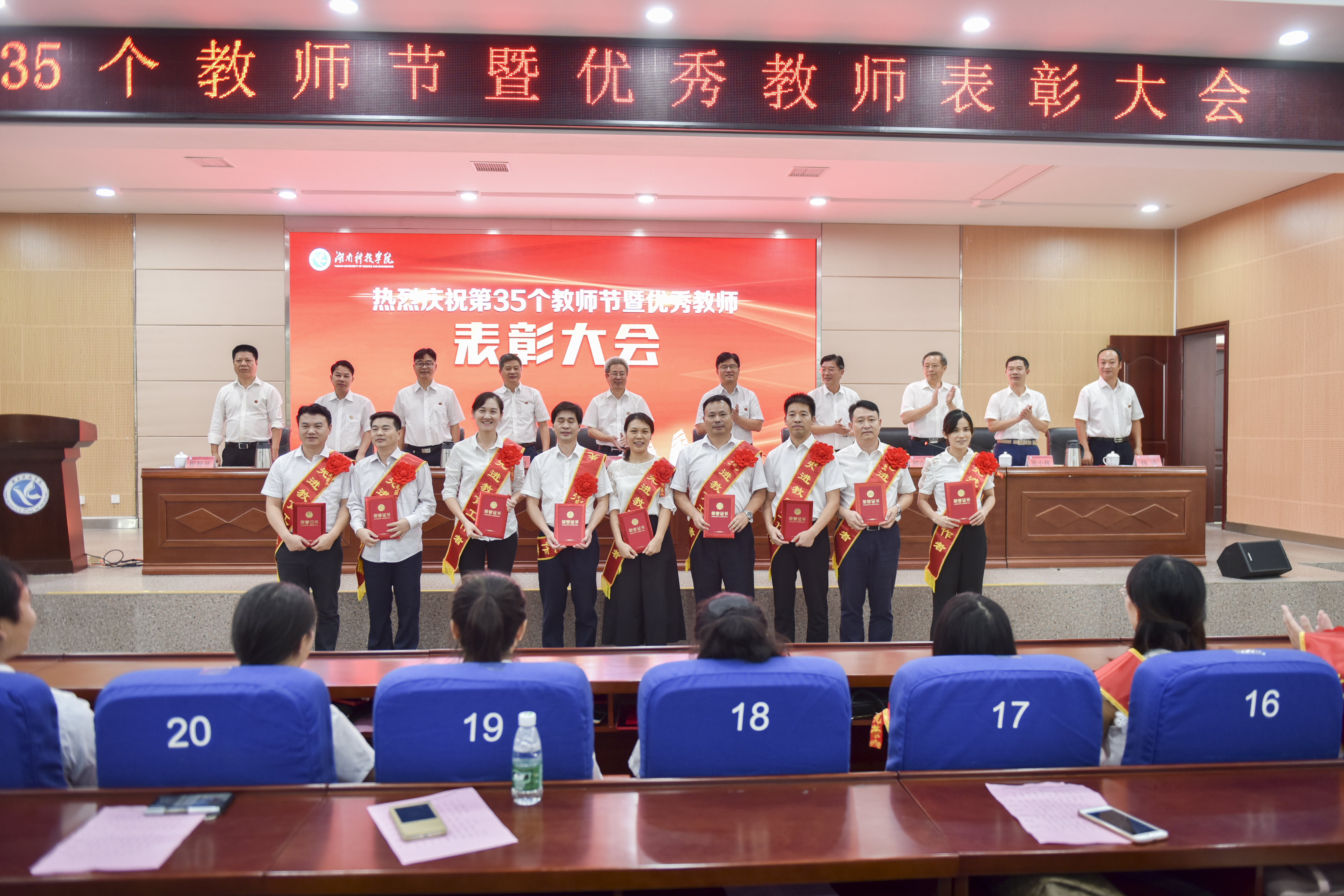 全体校领导为受表彰同志颁奖。