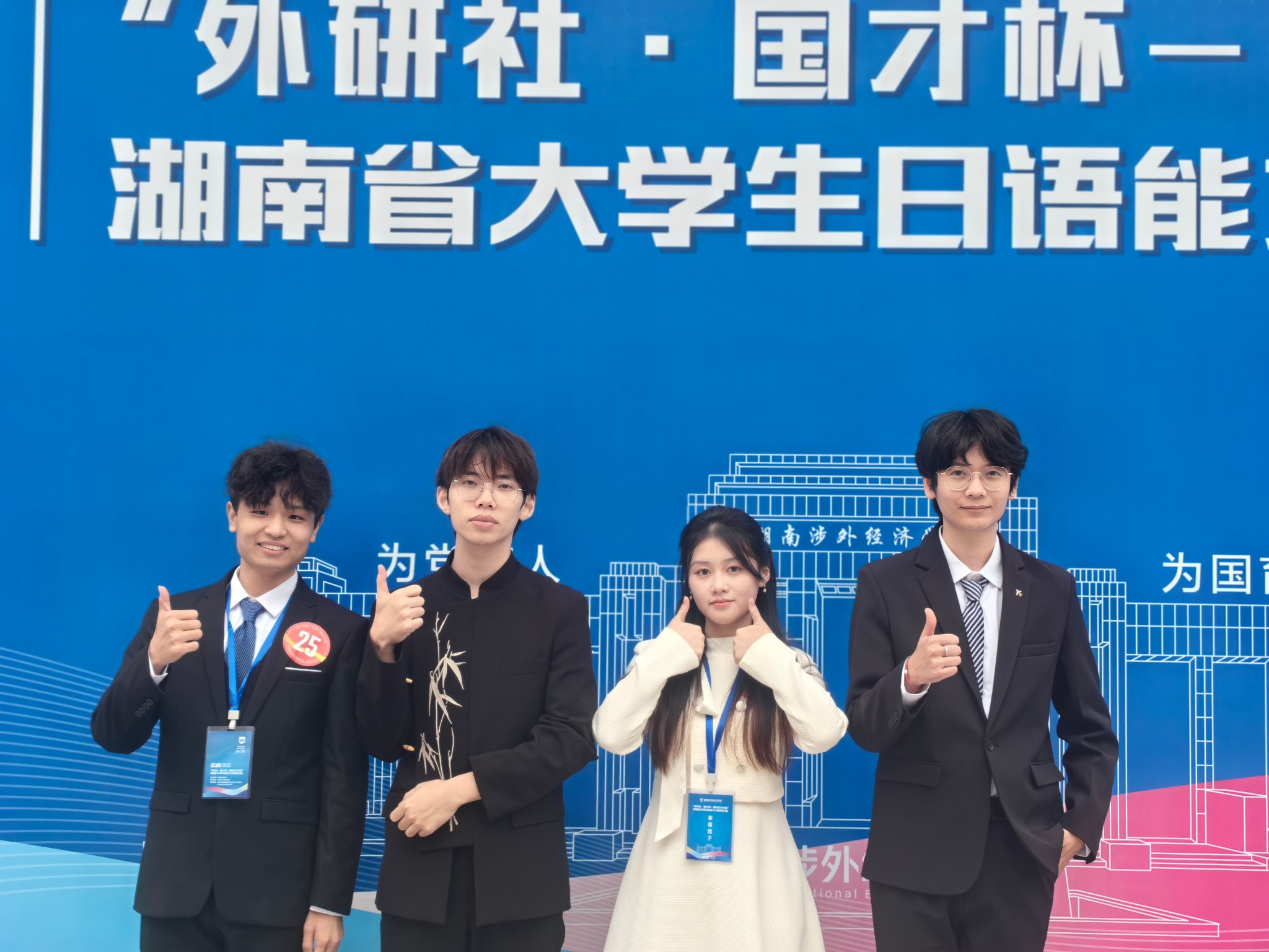 在10月25-26日举行的日语能力大赛中,全省18所高校的72名研究生与本科生同台竞技,赛事成绩由线上综合测试与线下演讲比赛加权评定。vwin德赢日语系学子延续优异表现,邓新宇、刘羽茜同学荣获省级一等奖并晋级全国总决赛,唐博、李韬同学分别荣获二、三等奖,其中邓新宇同学以本科生组第一名的综合成绩脱颖而出。同时,学校代表队荣获湖南省团体一等奖。这是继2024年于璟同学斩获省级一等奖并勇夺国赛金奖后,日语系学子再次取得的好成绩,展现了专业高质量发展的良好态势。