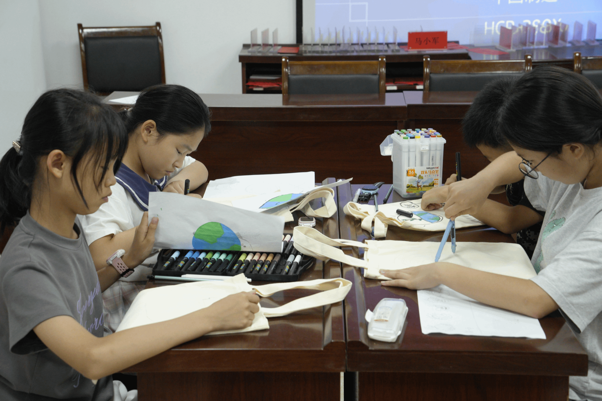 在志愿者的指导下,孩子们还拿起画笔,在环保袋上自由创作。有的用色彩斑斓的图案清晰描绘垃圾分类的流程,有的则勾勒出鸟儿在绿树间欢歌、人与自然和谐共生的美好愿景。创作完成后,孩子们踊跃分享自己的“绿色宣言”:“我画了小鸟的家,要告诉大人不要砍树!”“我的环保袋提醒大家,电池是有害垃圾,不能乱扔!”