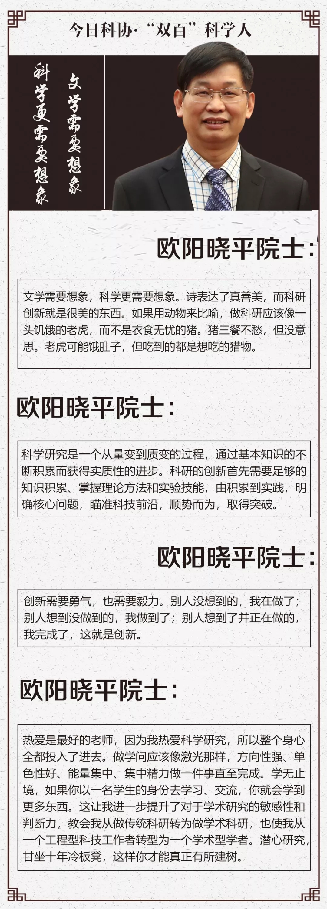 欧阳晓平院士在中国科学技术协会成立60周年百名科学家、百名基层科技工作者座谈会上
