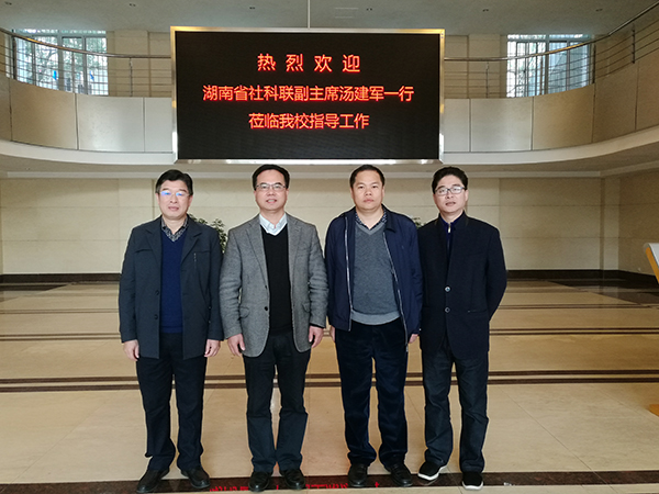 本网讯 2月17日上午,湖南省社科联党组成员、专职副主席汤建军莅临vwin德赢调研指导,汤建军强调,要通过平台建设不断扩大优秀传统文化的影响,将文化自信变成一种思想、行动自觉,切实做好对传统文化的传承。