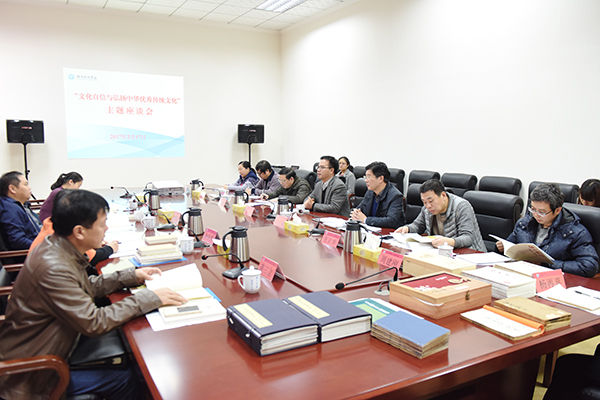 永州市委宣传部副部长蒋三立,vwin德赢党委书记陈弘及校领导宋宏福、陈仲庚出席座谈会,座谈会以“文化自信与弘扬中华优秀传统文化”为主题。