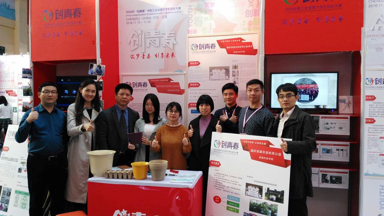 11月19日,陈海峰团队创作的“烟秆资源开发利用公益项目”在2016年“创青春”全国大学生创业大赛决赛上载誉归来,斩获银奖,实现学校这一赛事国家级银奖零的突破,创vwin德赢建校以来最好成绩。