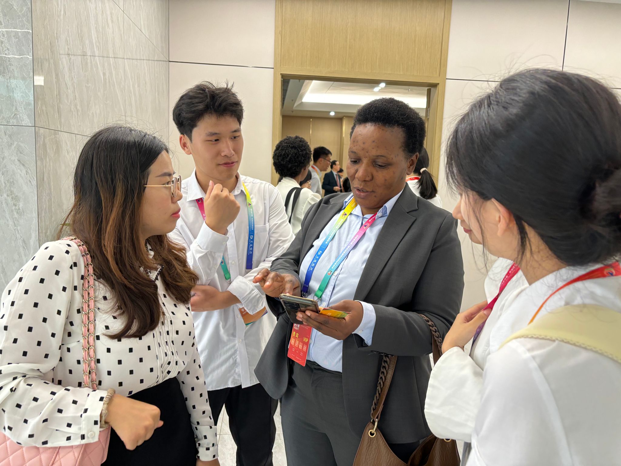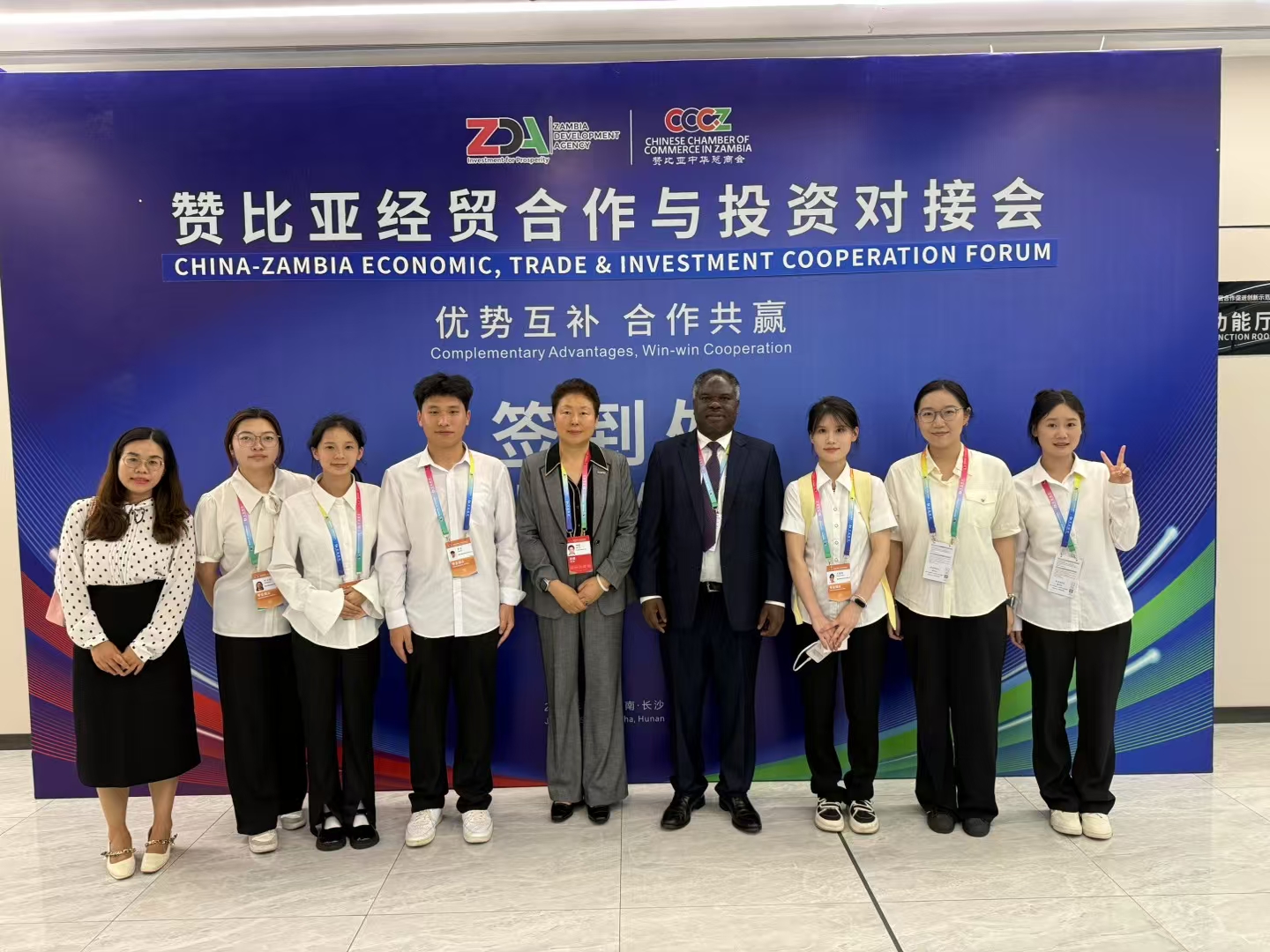 本网讯(通讯员 黄雅丽)6月12日至13日,vwin德赢53名师生赴长沙参加第四届中非经贸博览会,圆满完成“湘商——中非经贸促进专场对接会”“赞比亚经贸合作与投资对接会”等会议保障任务。团队充分发挥专业特长,负责会务议程(含嘉宾主旨发言)文本翻译、与会外宾现场口译、重点贵宾一对一翻译、会议现场礼仪引导及志愿服务等工作,以精湛的专业素养和热情的服务精神赢得了广泛赞誉。