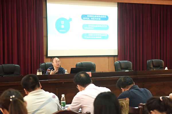 冯刚紧紧围绕党的十九大精神和全国高校思政会议精神,结合青年学生所处的时代特征和当前思想政治教育面临的热点问题,阐述了开展思想政治教育热点研究的重要性和必要性。他指出,对思想政治教育热点问题的研究有利于实际工作开展、理论水平的提升和职业规划与发展,要根据所处的时代特征和学科背景对热点进行持续深入的追踪和研究,必须要有鲜明的实践指向。