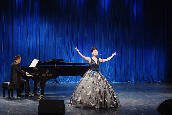 “山有木兮木有枝,心悦君兮君不知。”一曲由古词改编的《越人歌》拉开了音乐会的序幕,清灵动人的女声独唱引人入胜。时而轻快明朗,时而激越高昂的笛子独奏,风格各异的民族唱法及美声唱法都让现场师生沉醉其中。女声独唱《贝加尔湖畔》、悠扬的高音演绎出的《他也许是我渴望见到的人》、《走西口新编》展示出的雄浑大气给现场观众带来一场绝美的音乐盛宴。《走进快活岭》笛子独奏,则将灵动跳跃的笛音与行云流水的琴声完美融合,《胜利时再闻花儿香》用说和唱相结合的方式,让观众们不时拍手喝彩。