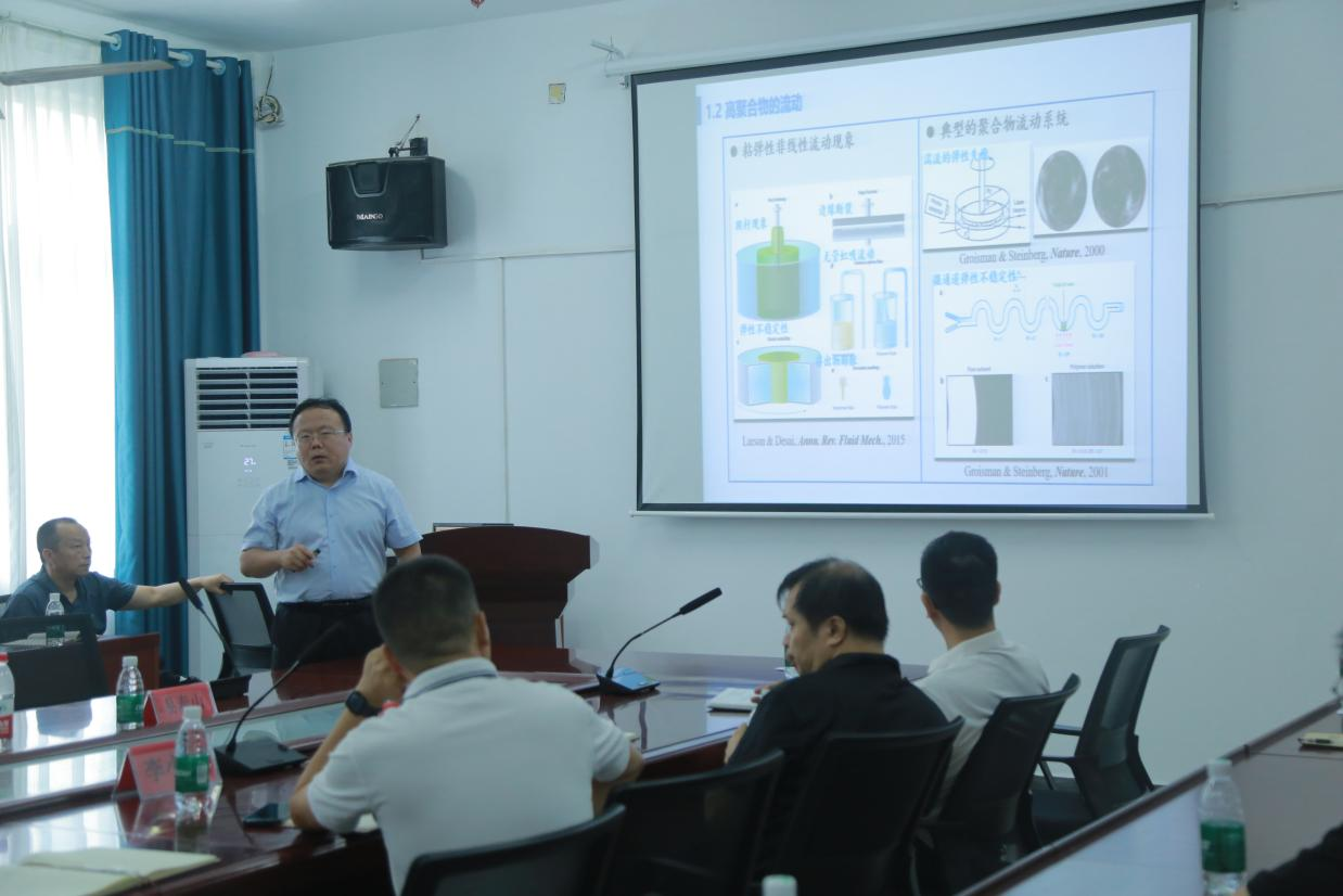 讲座伊始,司新辉教授从自然现象出发讲述了流体力学的一些基本概念,列举了很多通俗易懂的生活实例,详细分析例题,解释涉及的物理知识和表达式。重点讲述了一些典型的粘弹性流体的本构模型,针对高Wi数问题,介绍不同的数值算法及结果比较。讲座最后司教授耐心解答提出的问题,并细心答疑解惑,师生们纷纷表示讲座学习氛围浓厚,受益匪浅。