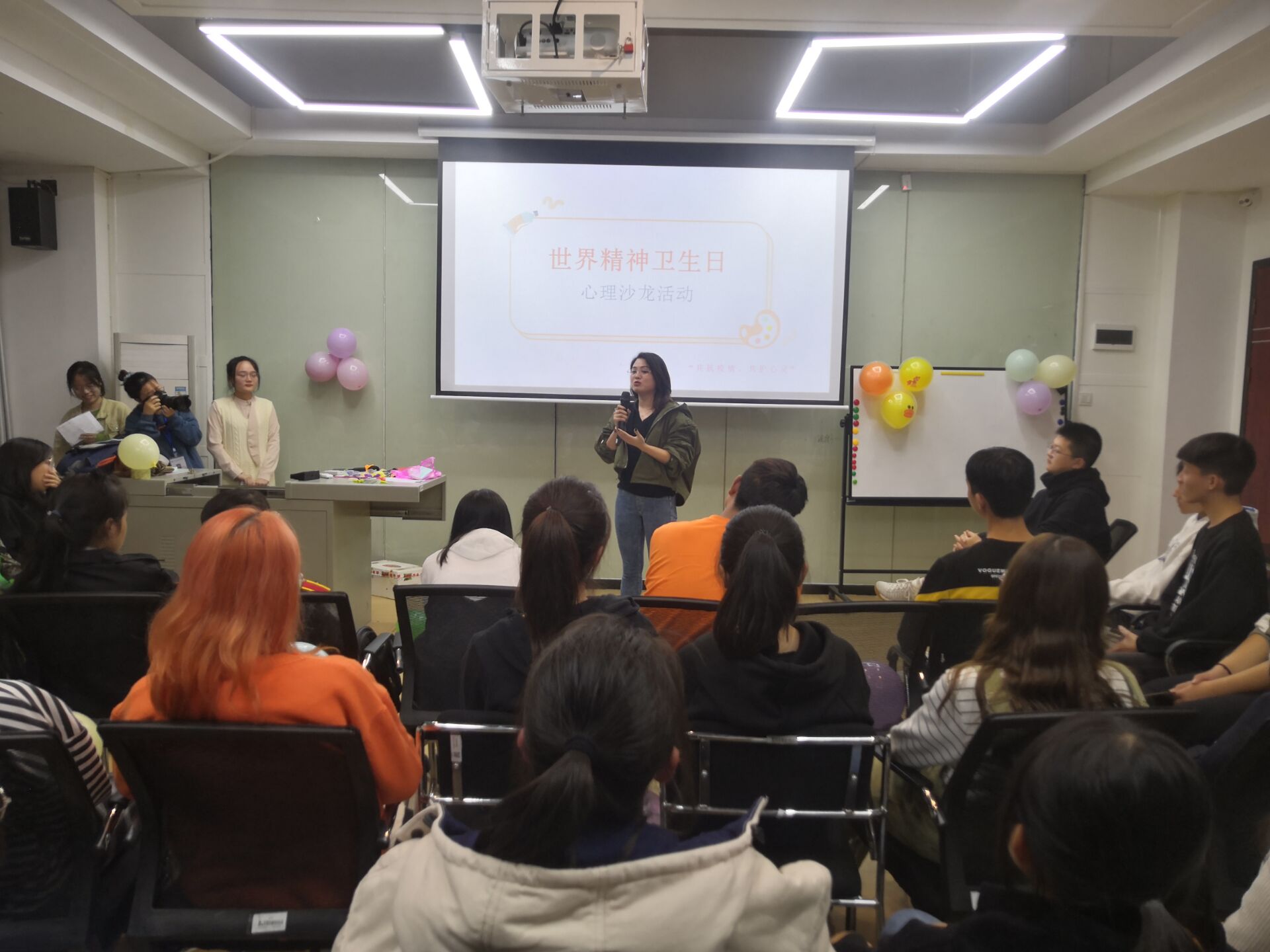 本网讯(通讯员戴兴鸿)2020世界精神卫生日主题为“弘扬抗疫精神,护佑心灵健康”,为响应国家号召,进一步弘扬各地心理健康工作者在抗击新冠肺炎疫情中表现的民族精神,提高公众对心理健康的重视程度。我院于10月15日晚在创新创业学院举行以“共抗疫情,共护心灵”为主题的心理沙龙活动,18级辅导员兼心理专干谢美出席,活动由心理部龙帆,刘金霞主持。