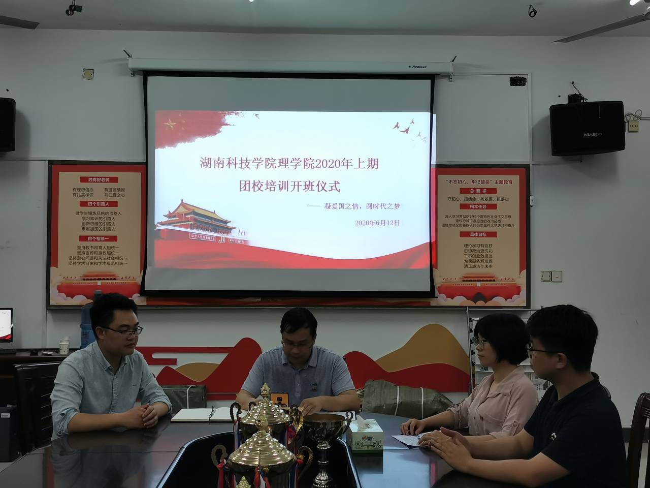 (通讯员 曹惠如)为引导青年学子发扬爱国主义情怀,担负时代使命,理学院团委组织开展以“凝爱国之情,圆时代之梦”为主题的团校培训,6月12日晚,理学院2020年上期团校培训线上开班典礼在明理楼307举行,理学院党总支副书记兼副院长黎建军、全体辅导员等参加了本次开班仪式。仪式由理学院团委书记曹惠如主持。