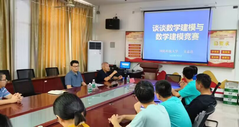 本网讯(通讯员:唐亚男)为让我院学生充分了解数学建模,积极参加数学建模竞赛,理学院特邀吴孟达教授于7月5日上午10点在明理楼308举行了“谈谈数学建模和数学建模竞赛”为题的学术讲座。理学院副院长吴清华、周立平,理学院部分教师、数学建模团队、30余名学生参会。